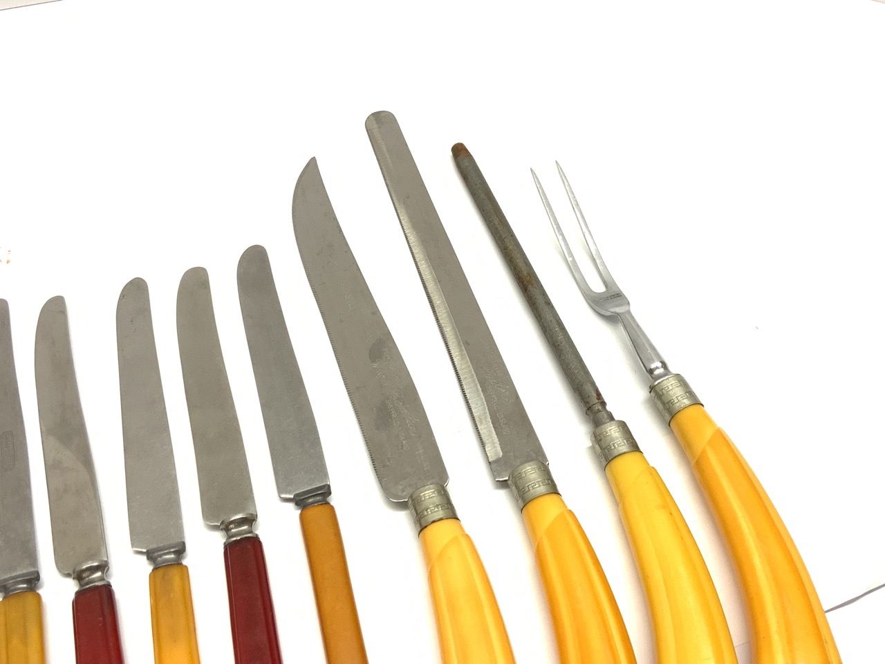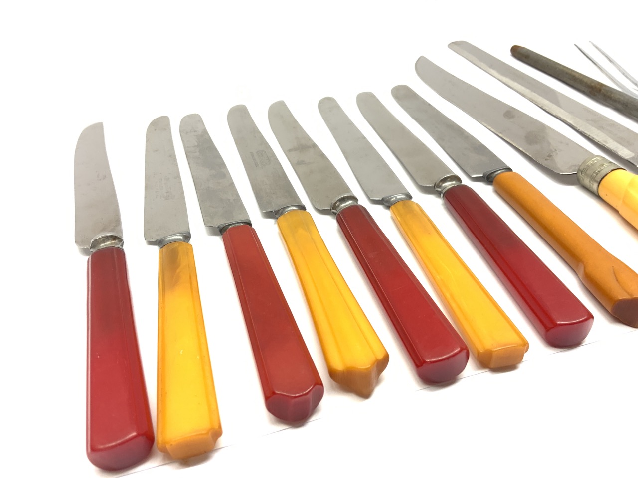 Compiled estate bakelite handled knives. As seen in photograph preview.