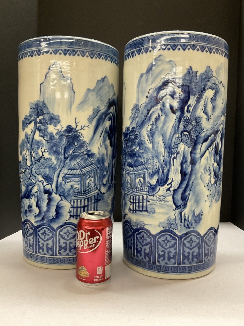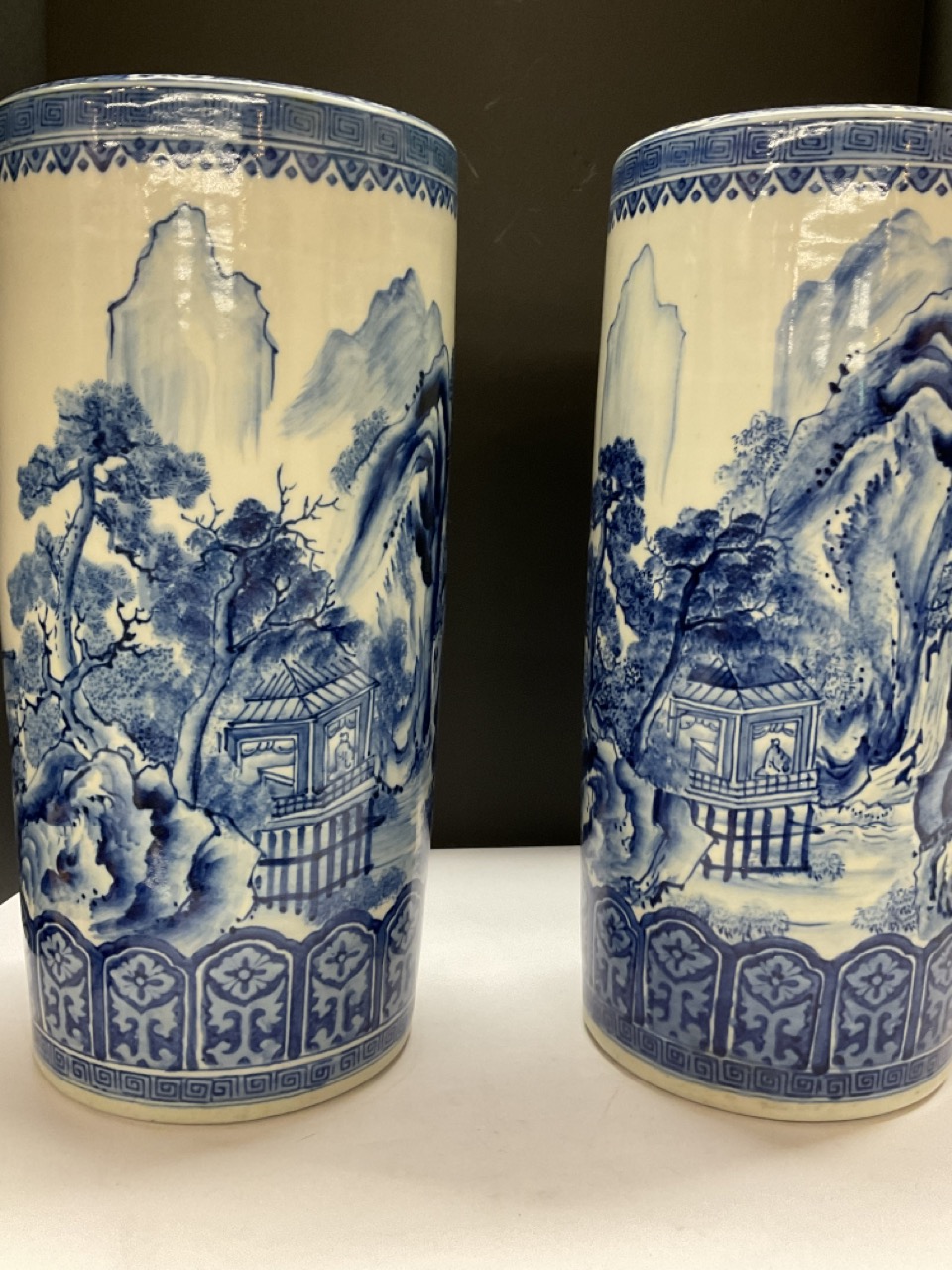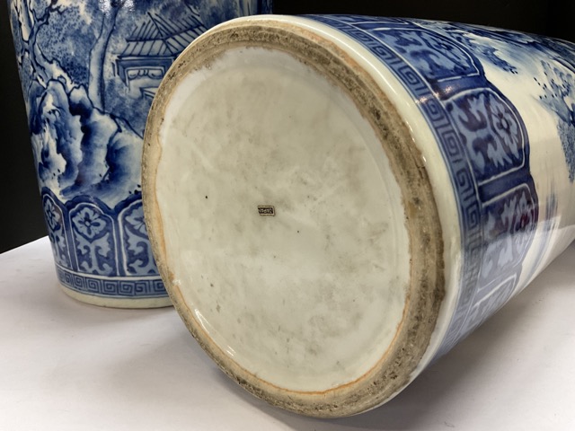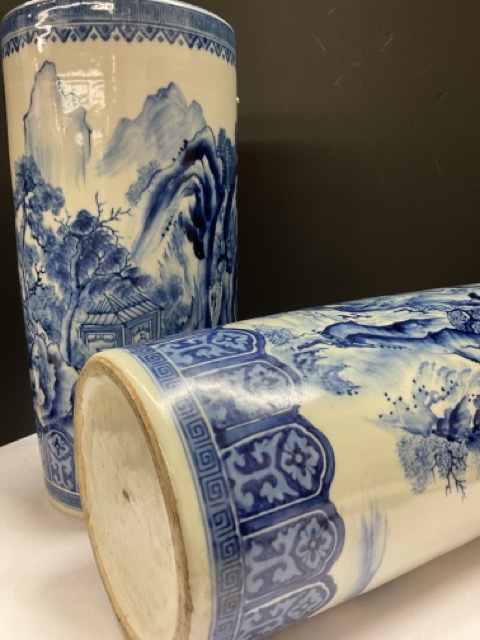 A pair, Japanese Blue And White Cylinder Vases.