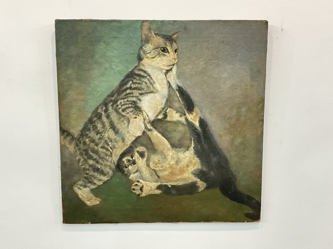 American Folk Art Painting Of Two Kittens At Play