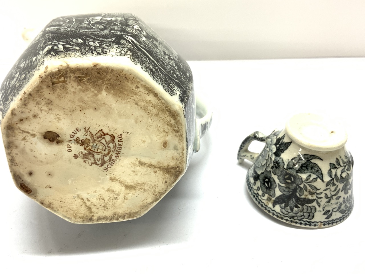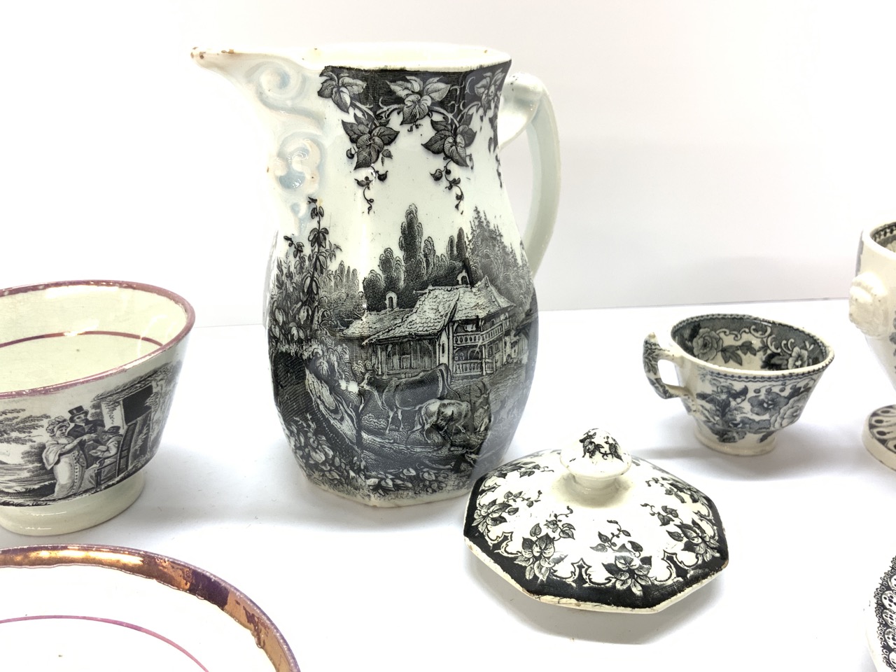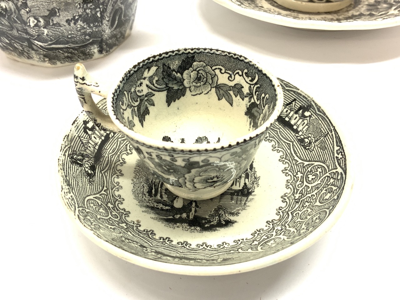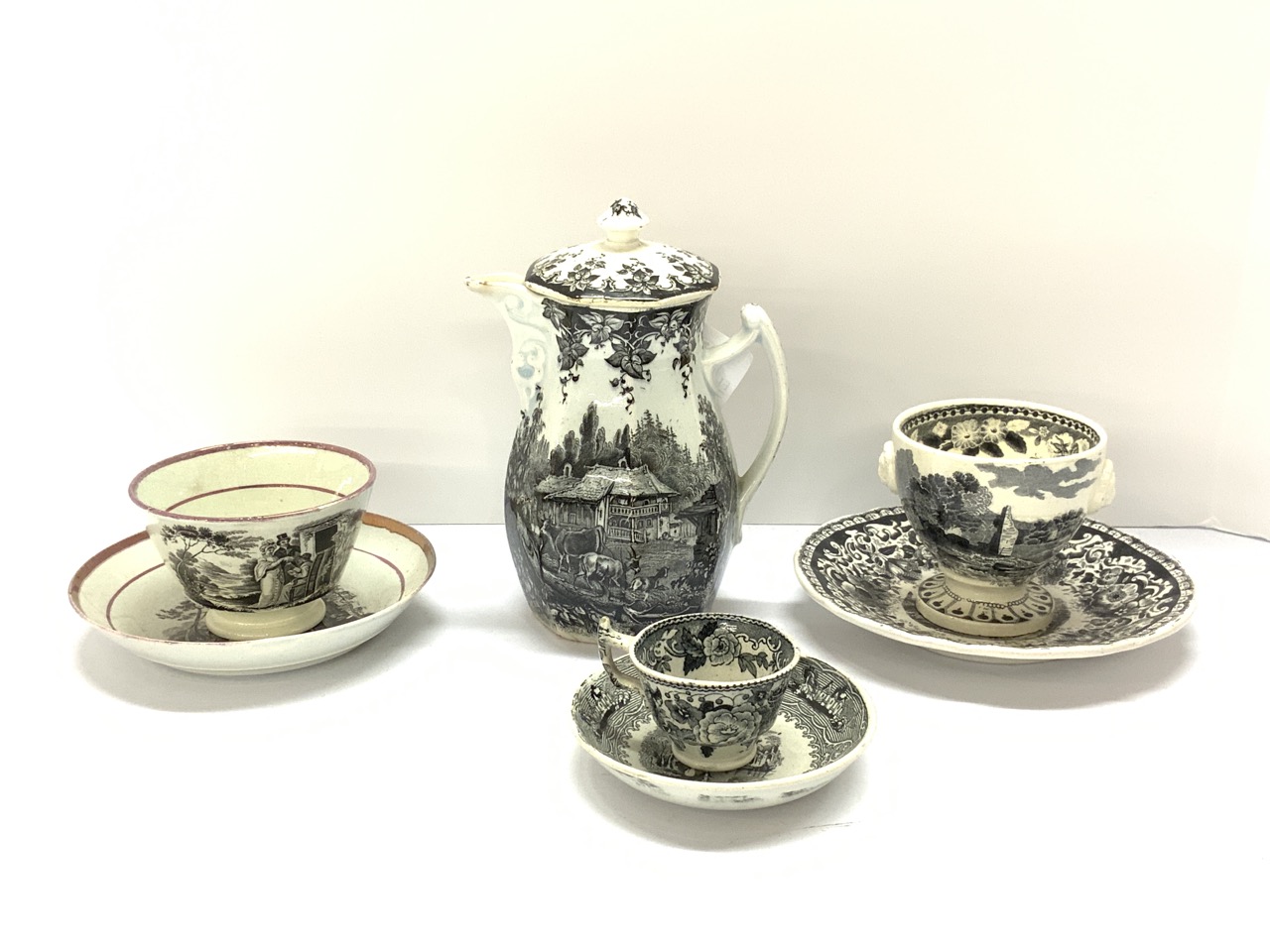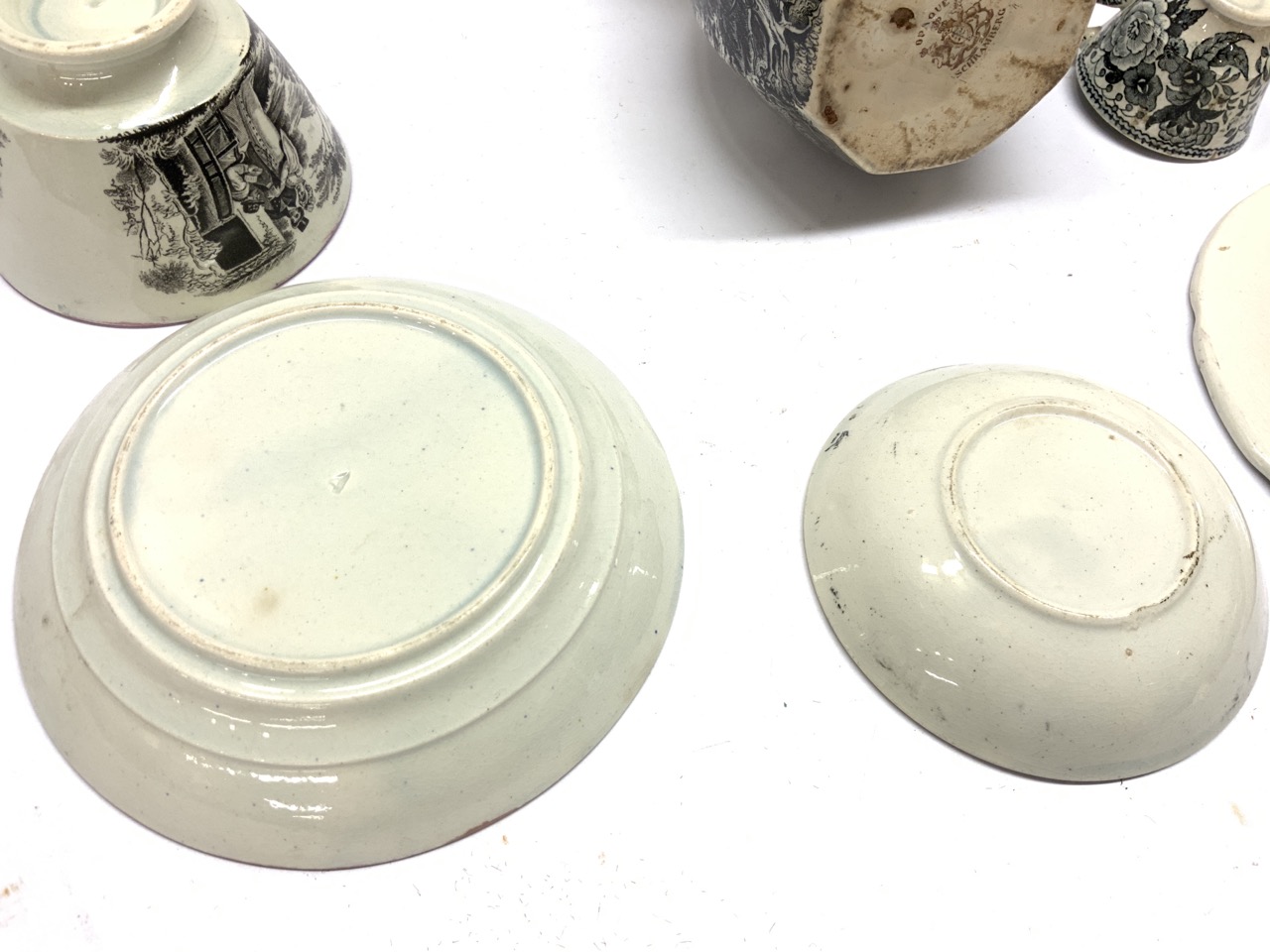 A grouping of black and white soft paste porcelain. 19th century.