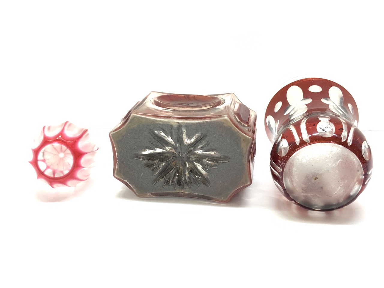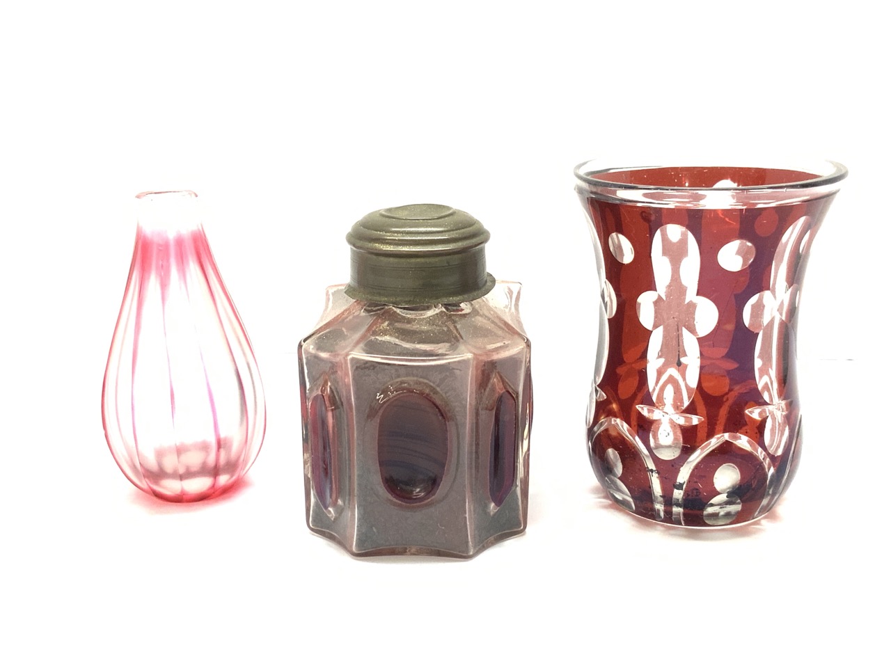 Three (3) Antique Cranberry & Ruby Glass