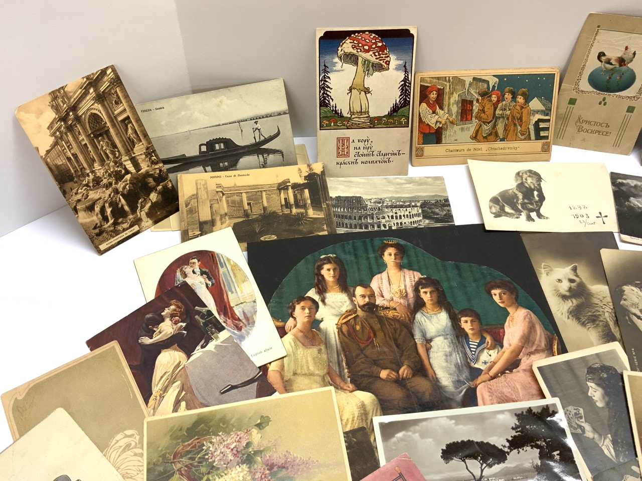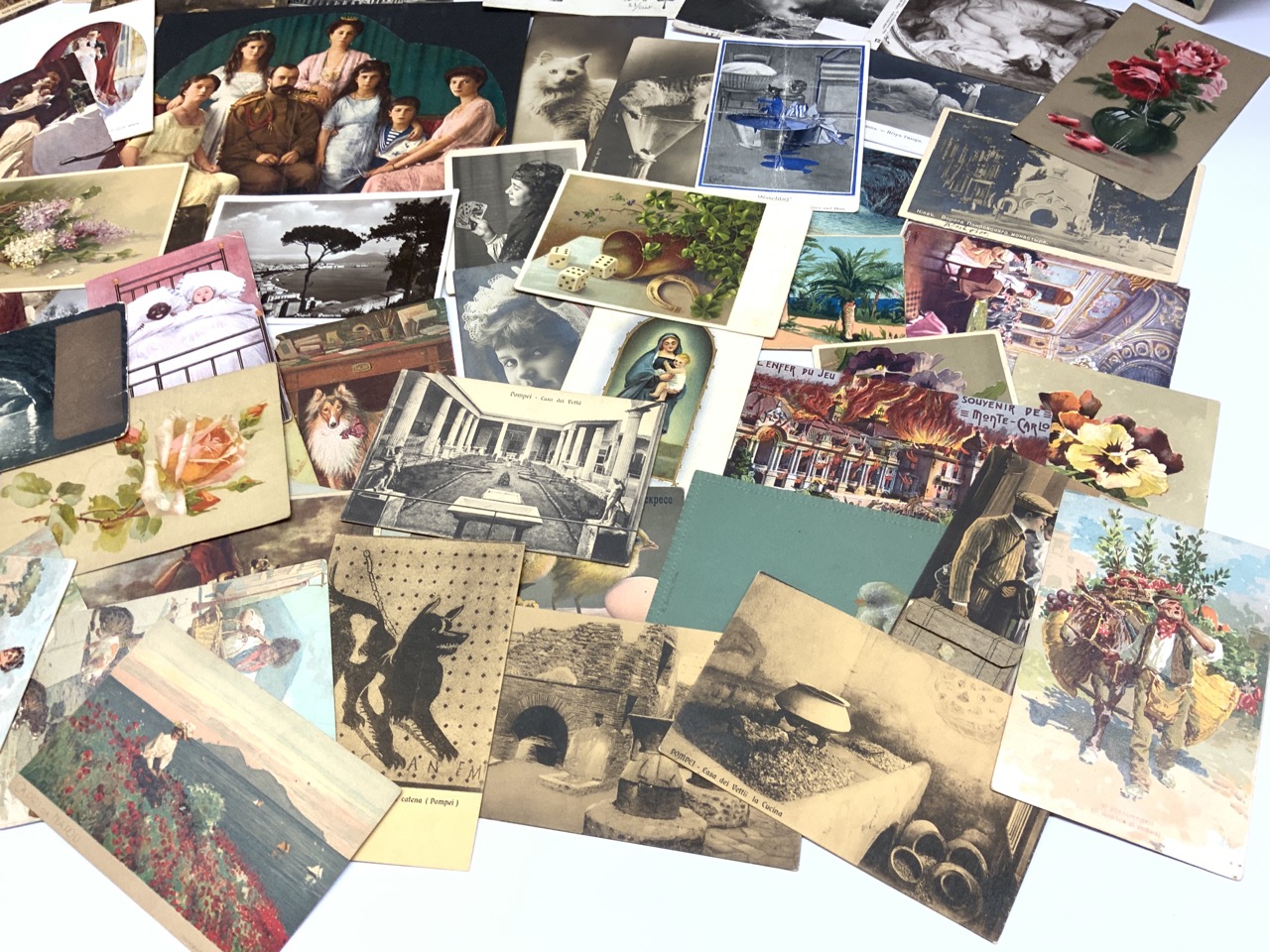 A very good selection of old postcards. Black Americana, Italian Capri, Russia Etc. Good content. Please see photograph preview.