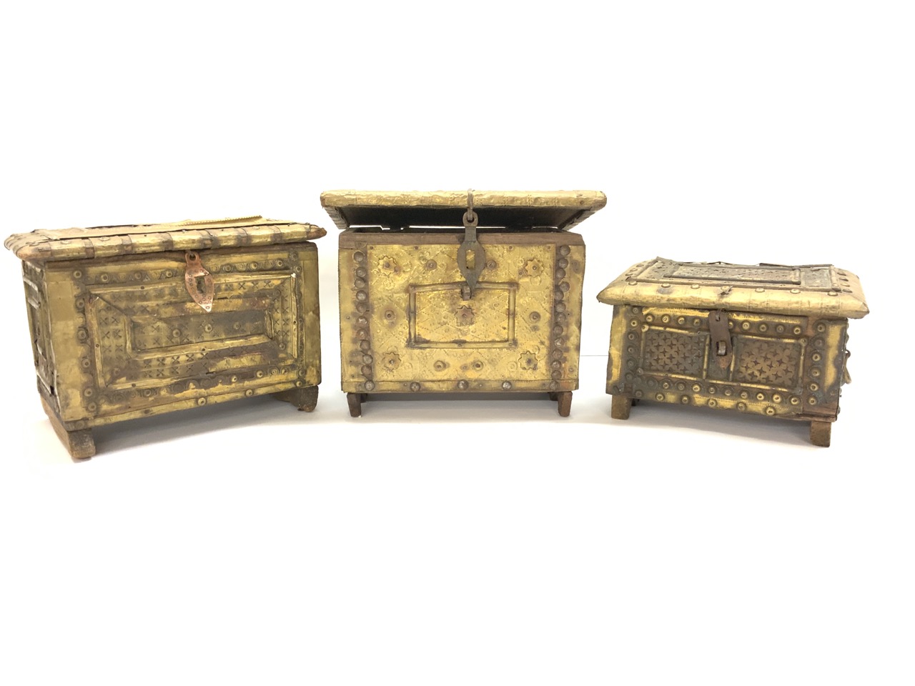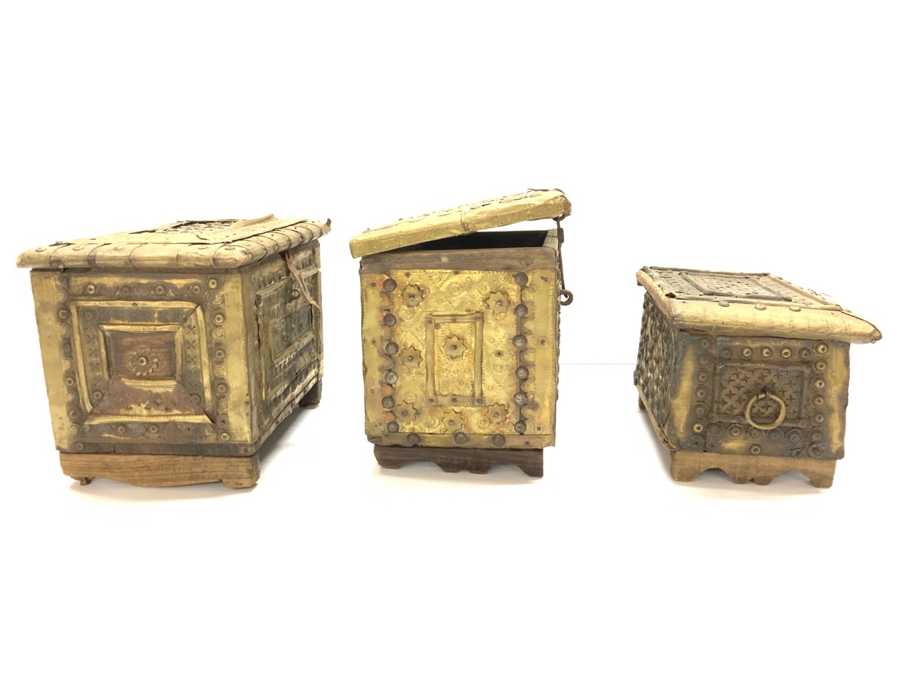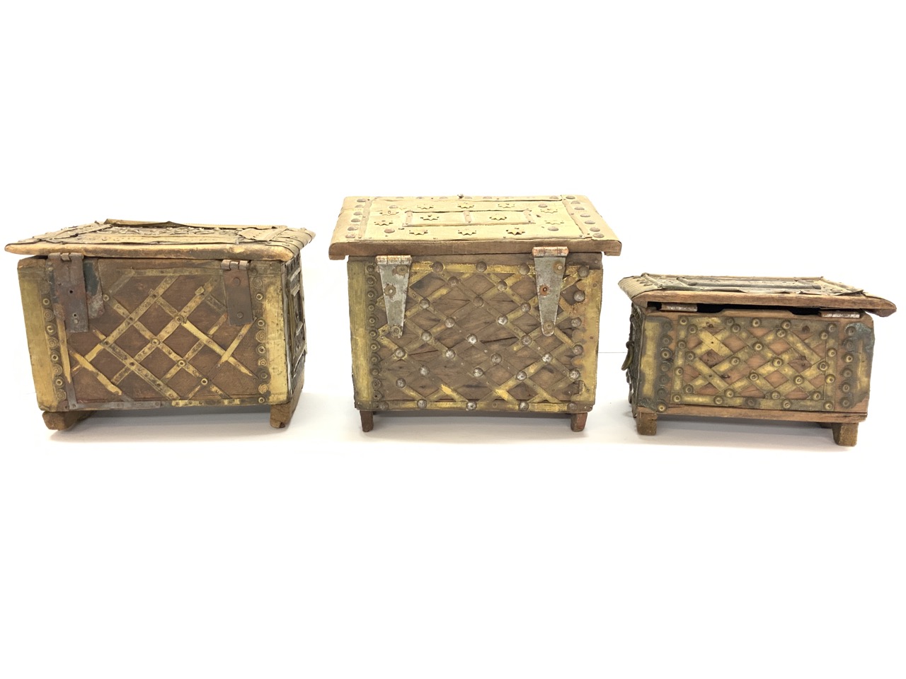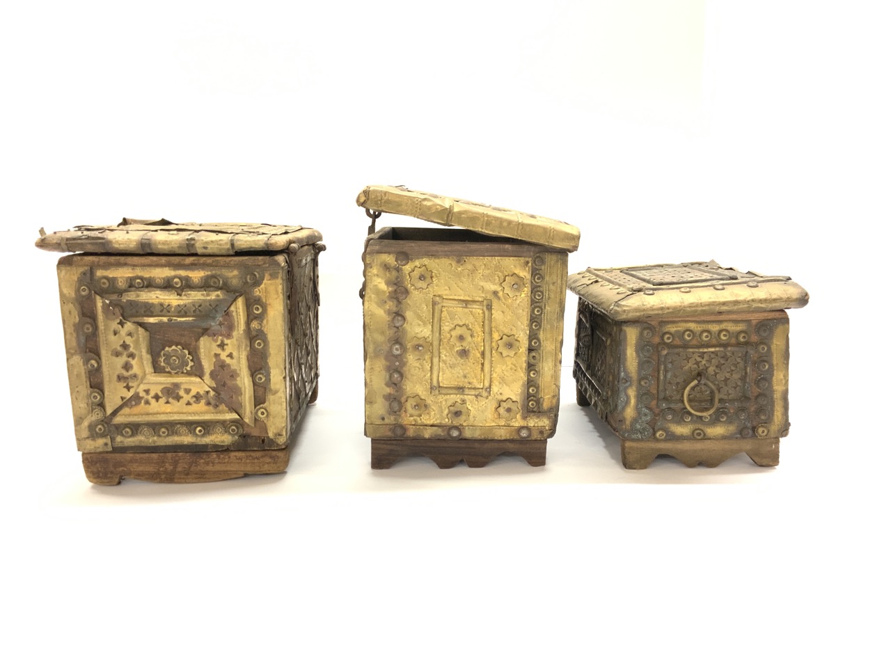 Three (3) Mid-Eastern Wood And Brass Tea Or Opium Chests