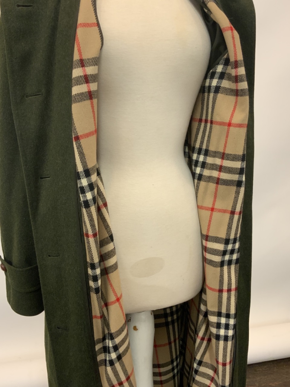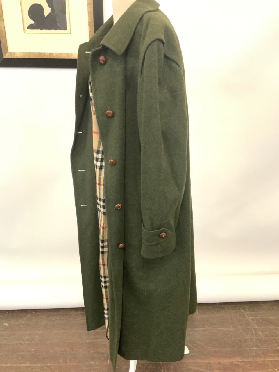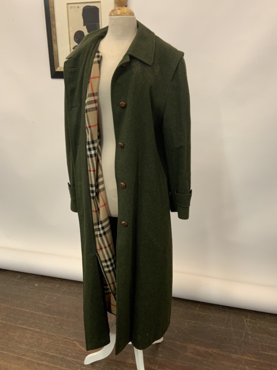 Burberry Full Length Green Wool Coat. Size 8 Women's.