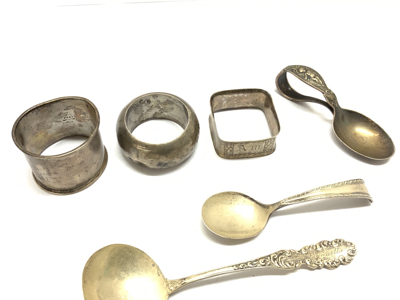Compiled estate sterling silver spoons, flatware, napkin rings etc.