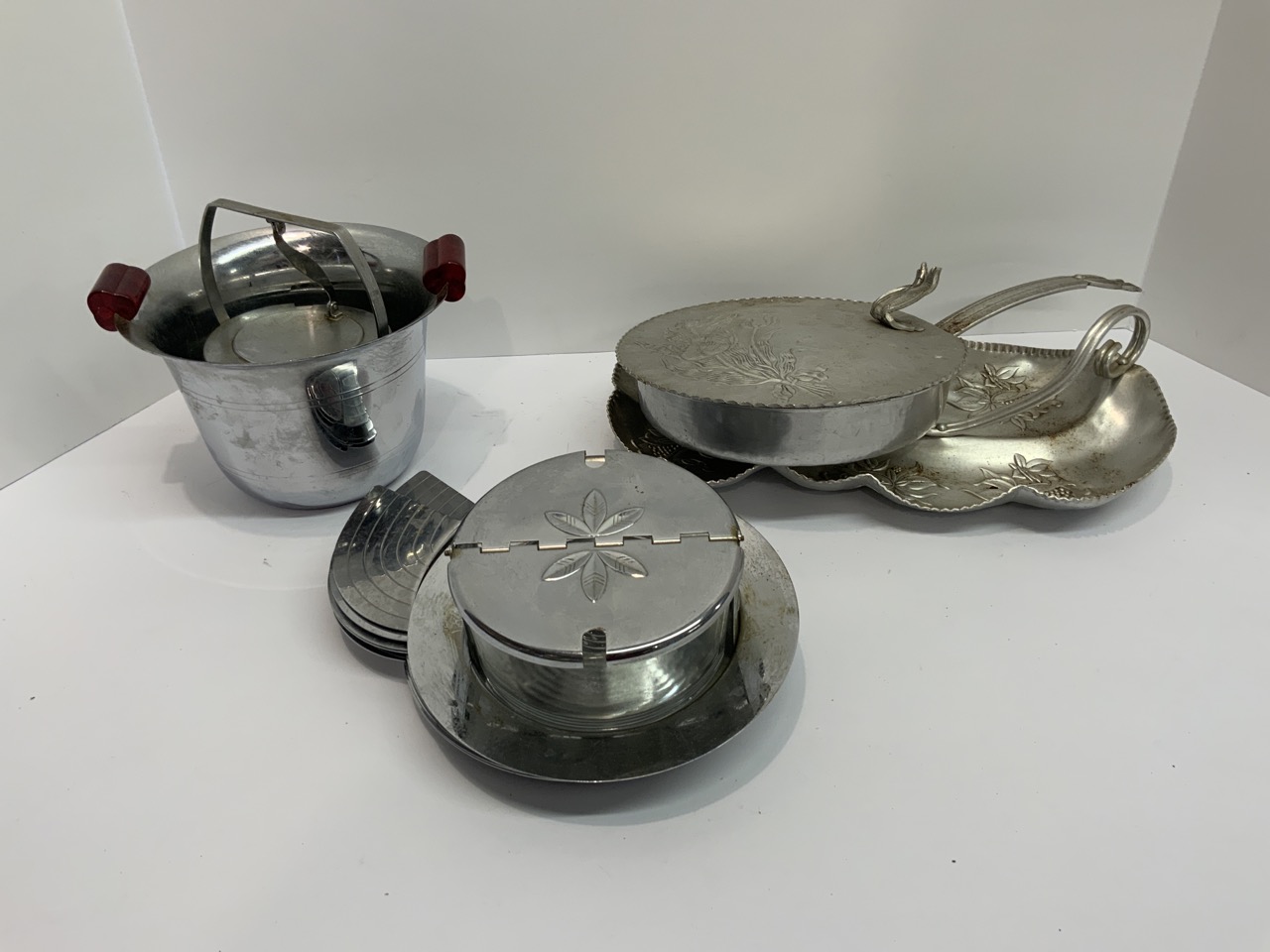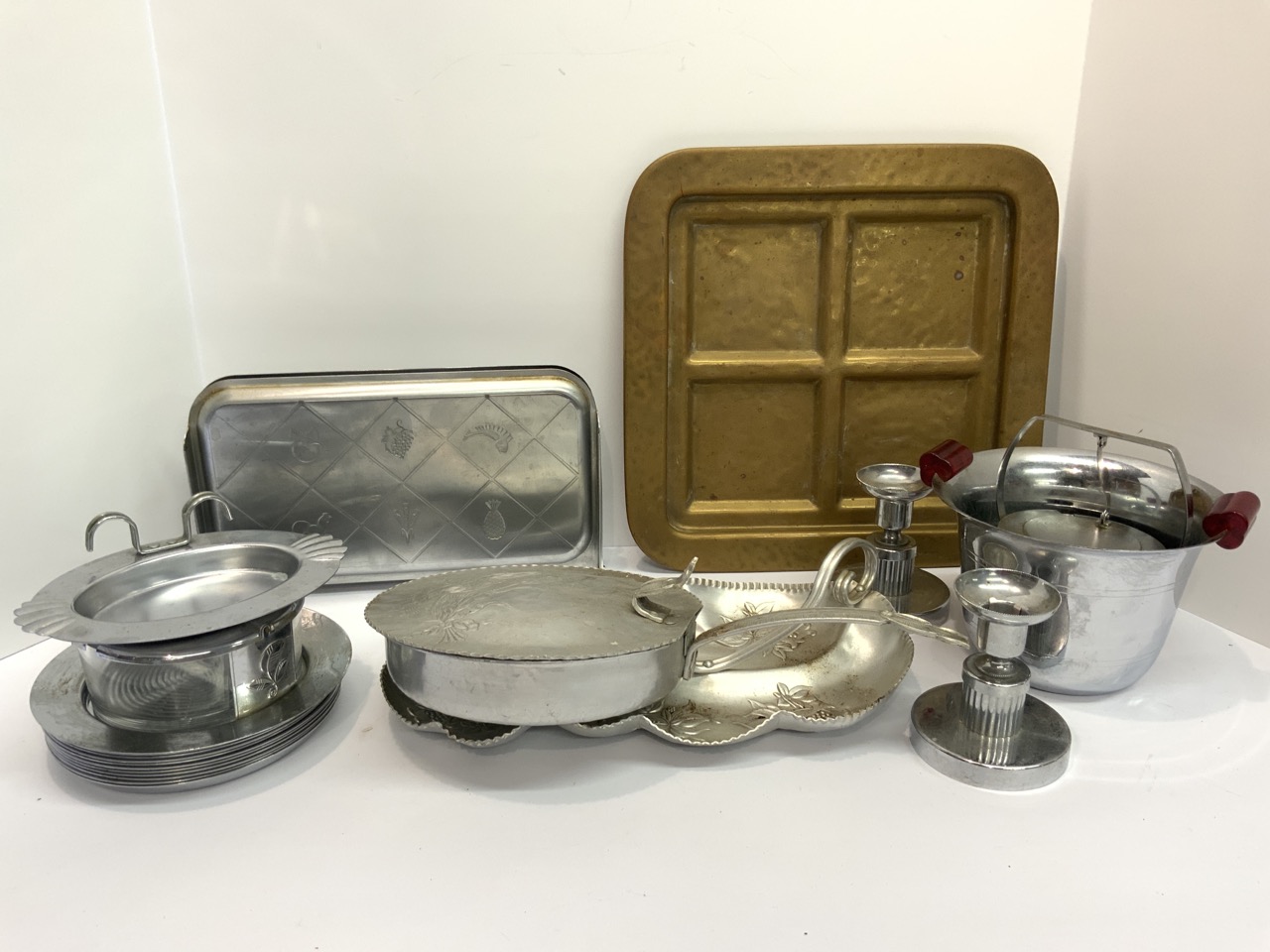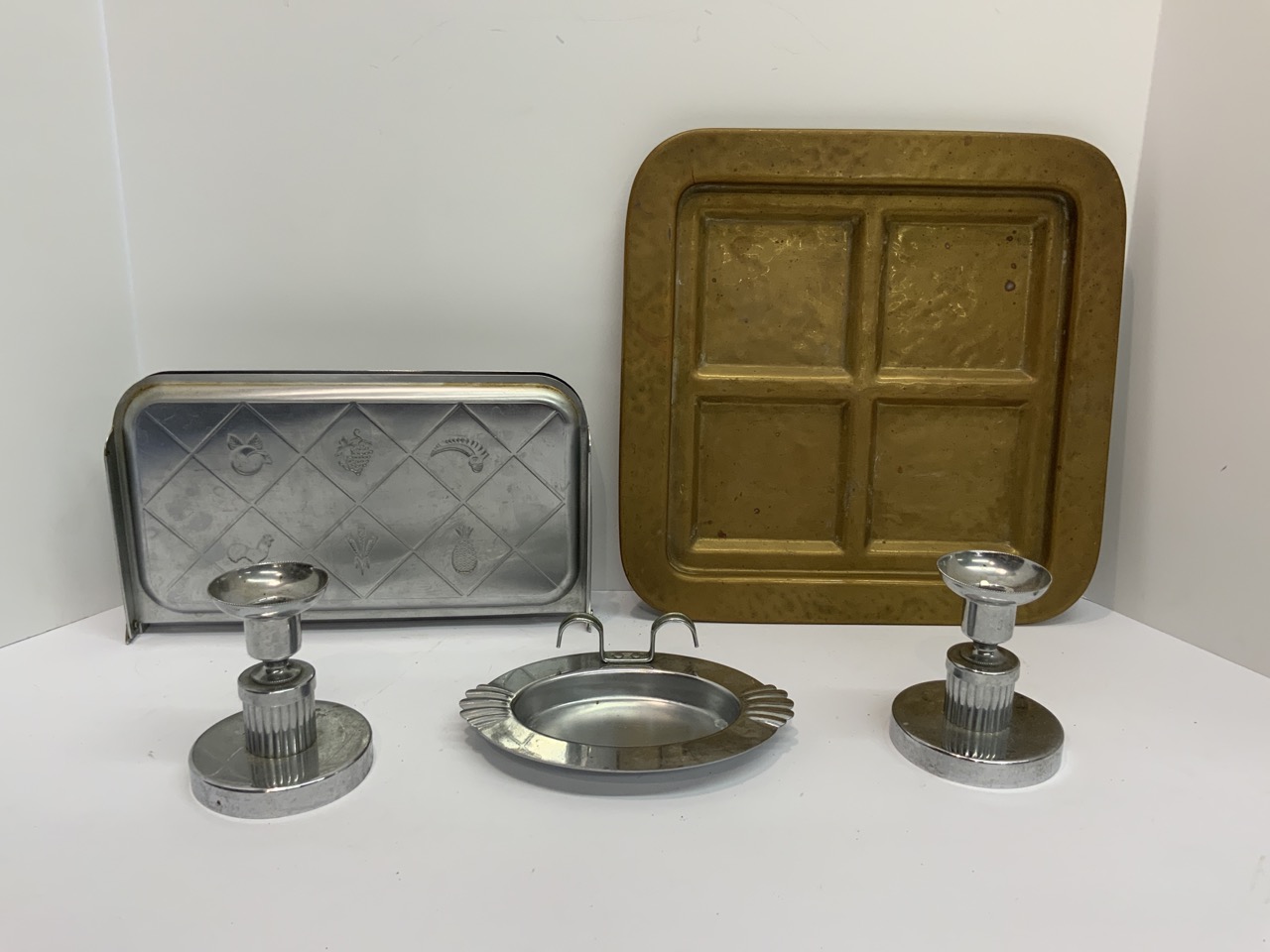 Gold tray, candlesticks