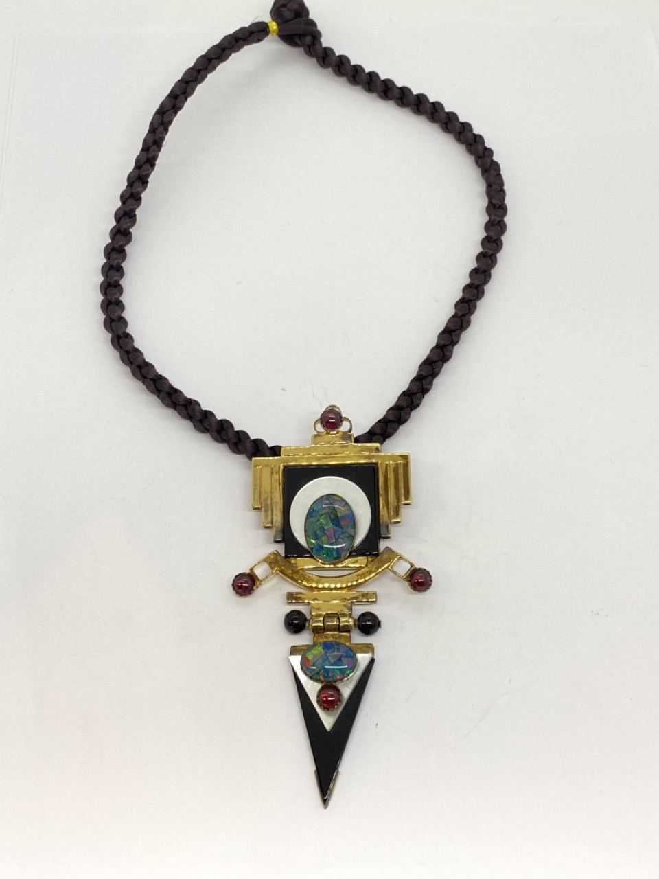 Lucia's Sterling silver vintage 80's modern pin/pendant 4" X 2" with black cord. Signed reverse.