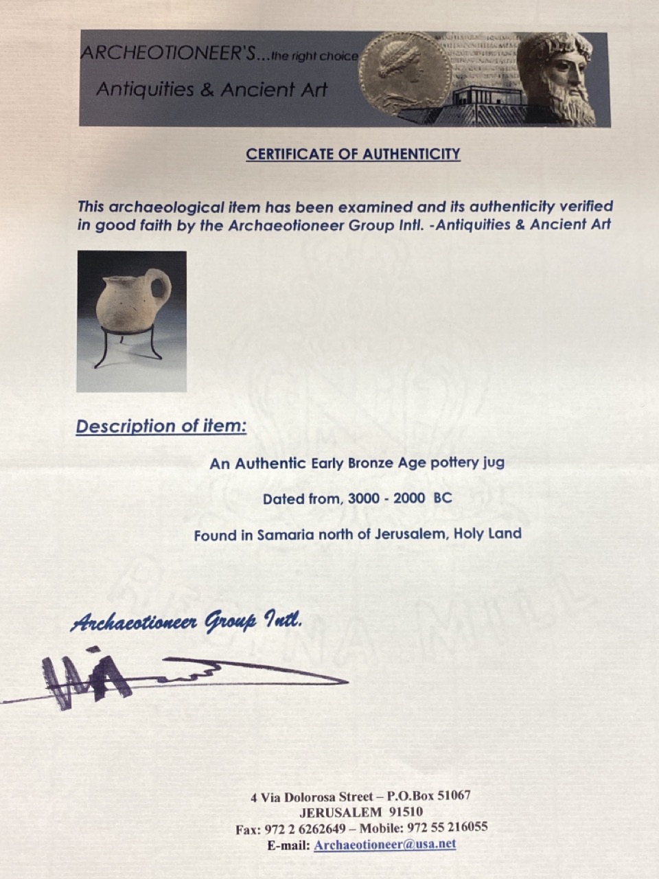 Authentic Early Bronze Age Pottery Jug