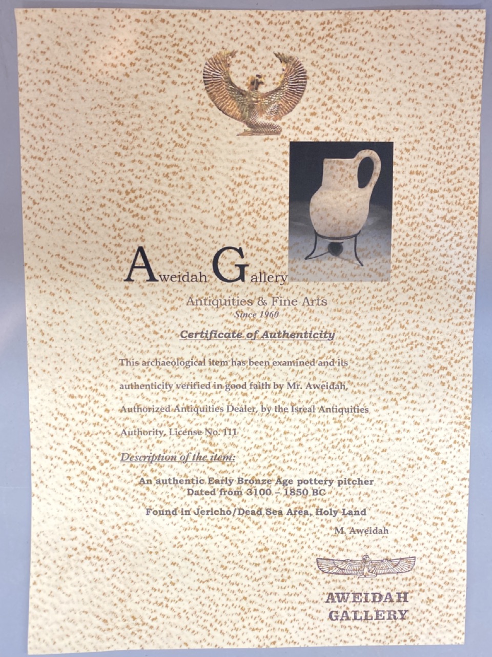 Authentic Early Bronze Age Pottery Pitcher 3100-1850 BC