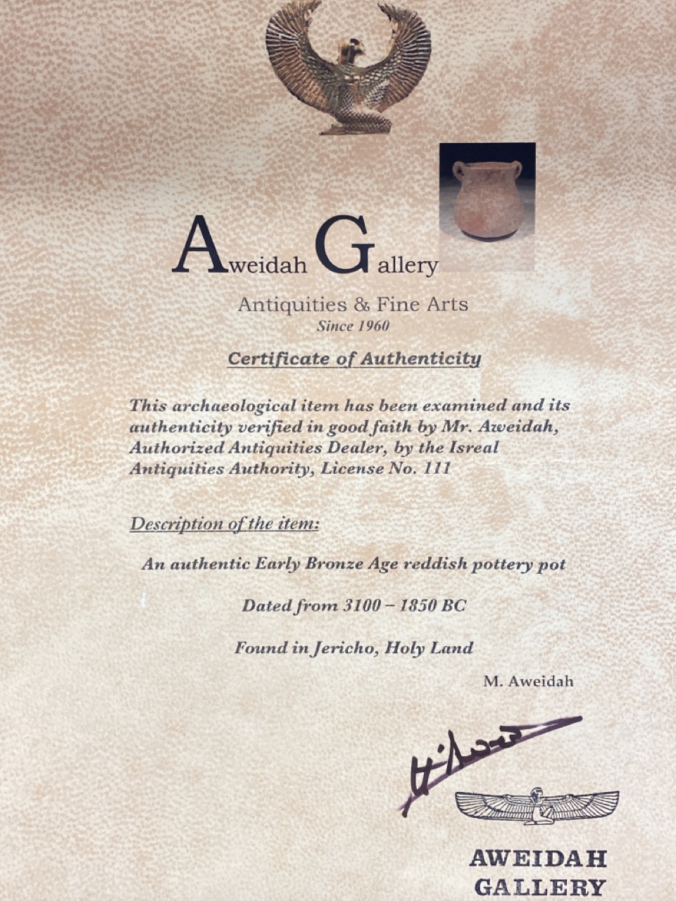 Authentic Early Bronze Age Reddish Pottery Pot 3100-1850 BC found in Jericho, Holy Land