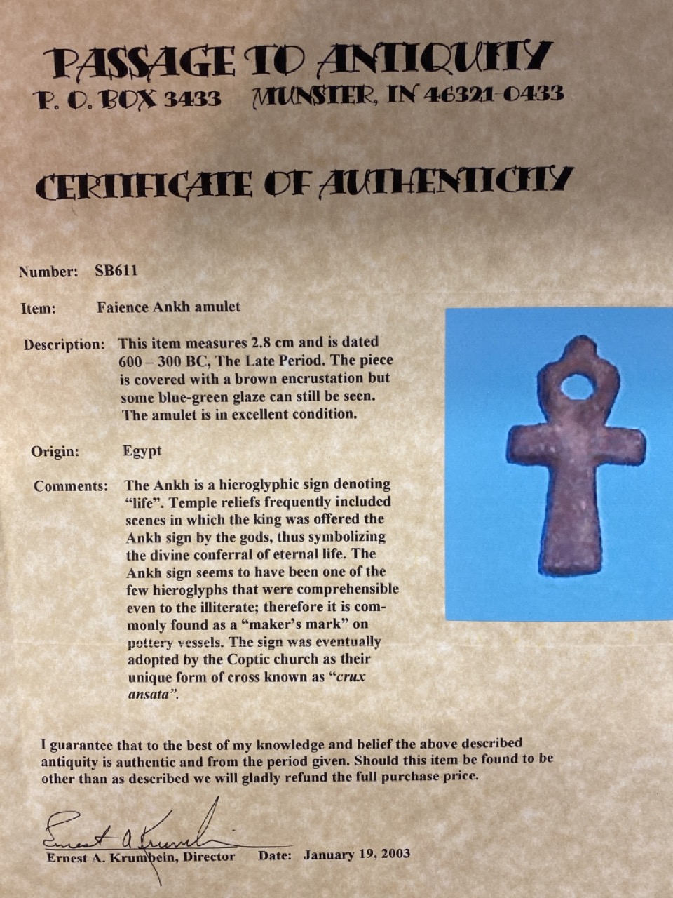 Egyptian Faience ANKH Amulet 600-300 BC.