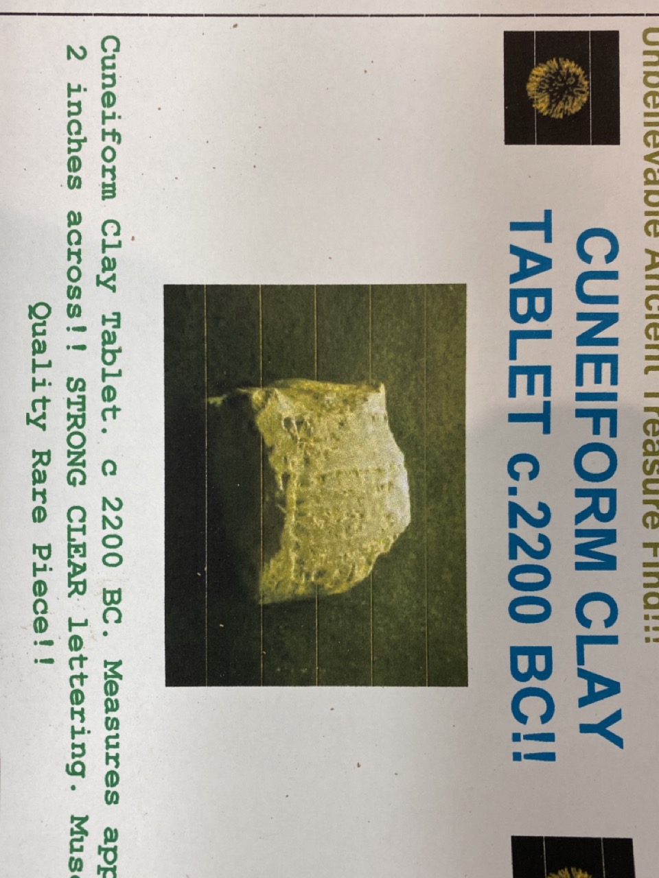 Cuneiform Clay Tablet 2200 BC