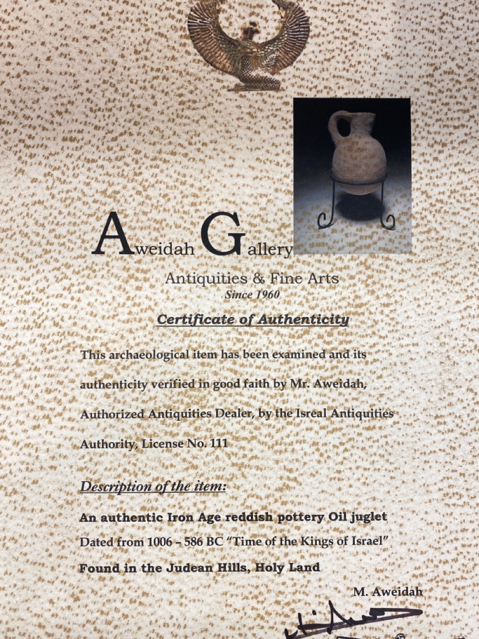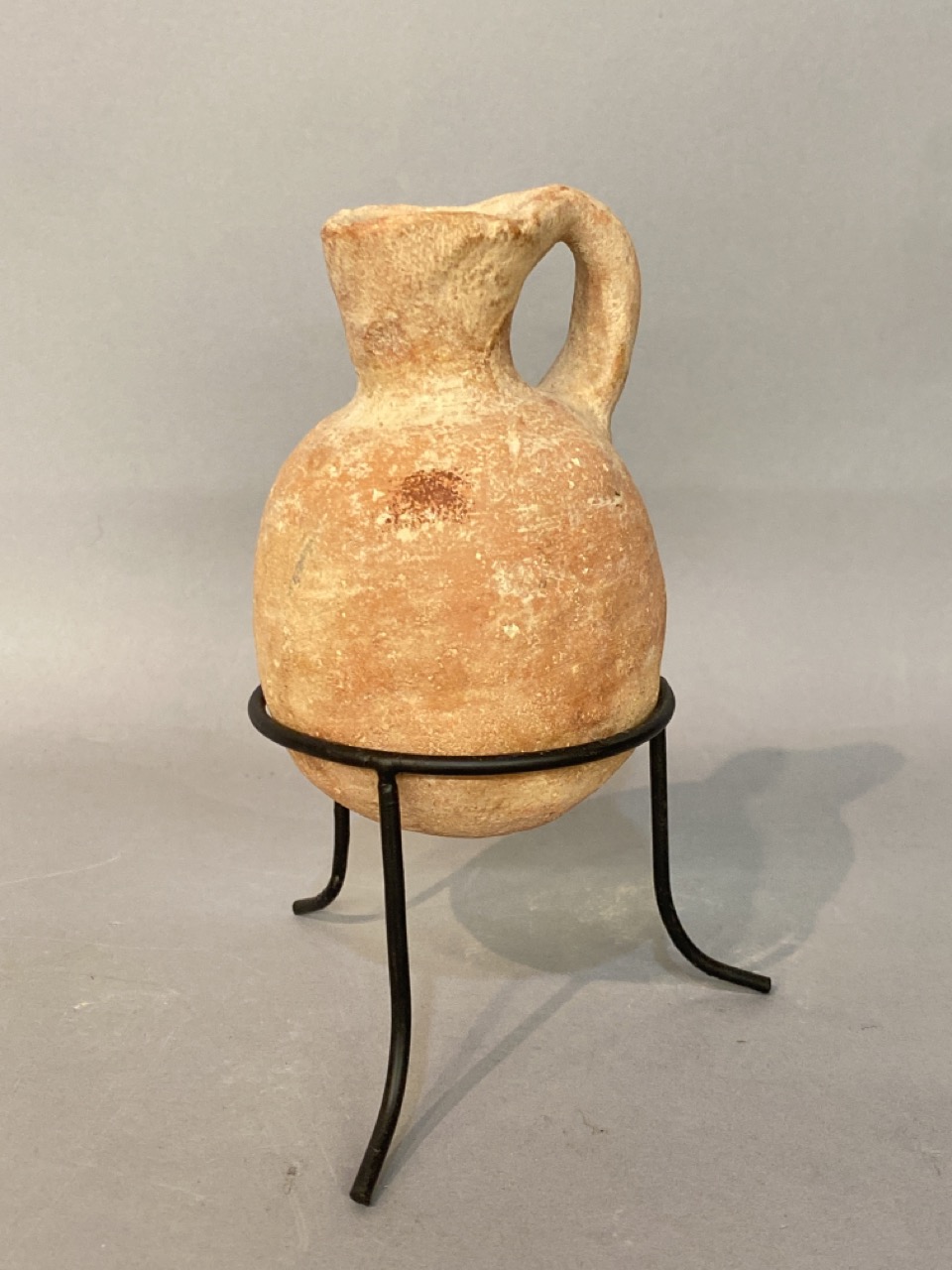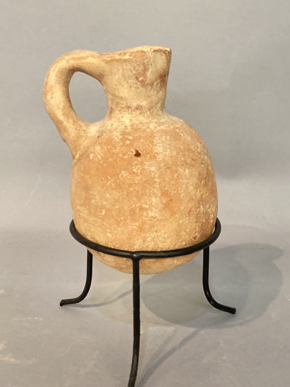 Authentic iron age reddish pottery oil juglet 1006-586 BC times of the kings of Israel found in Judaism hills holy land