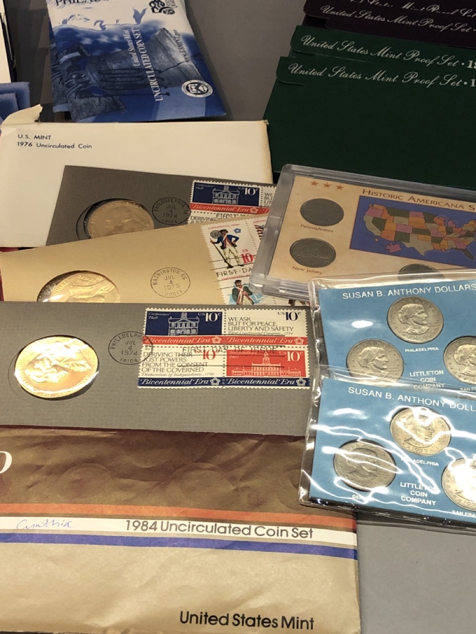 A compiled collection of coins including U.S. proof and mint sets. Israeli etc. As seen in photograph preview.