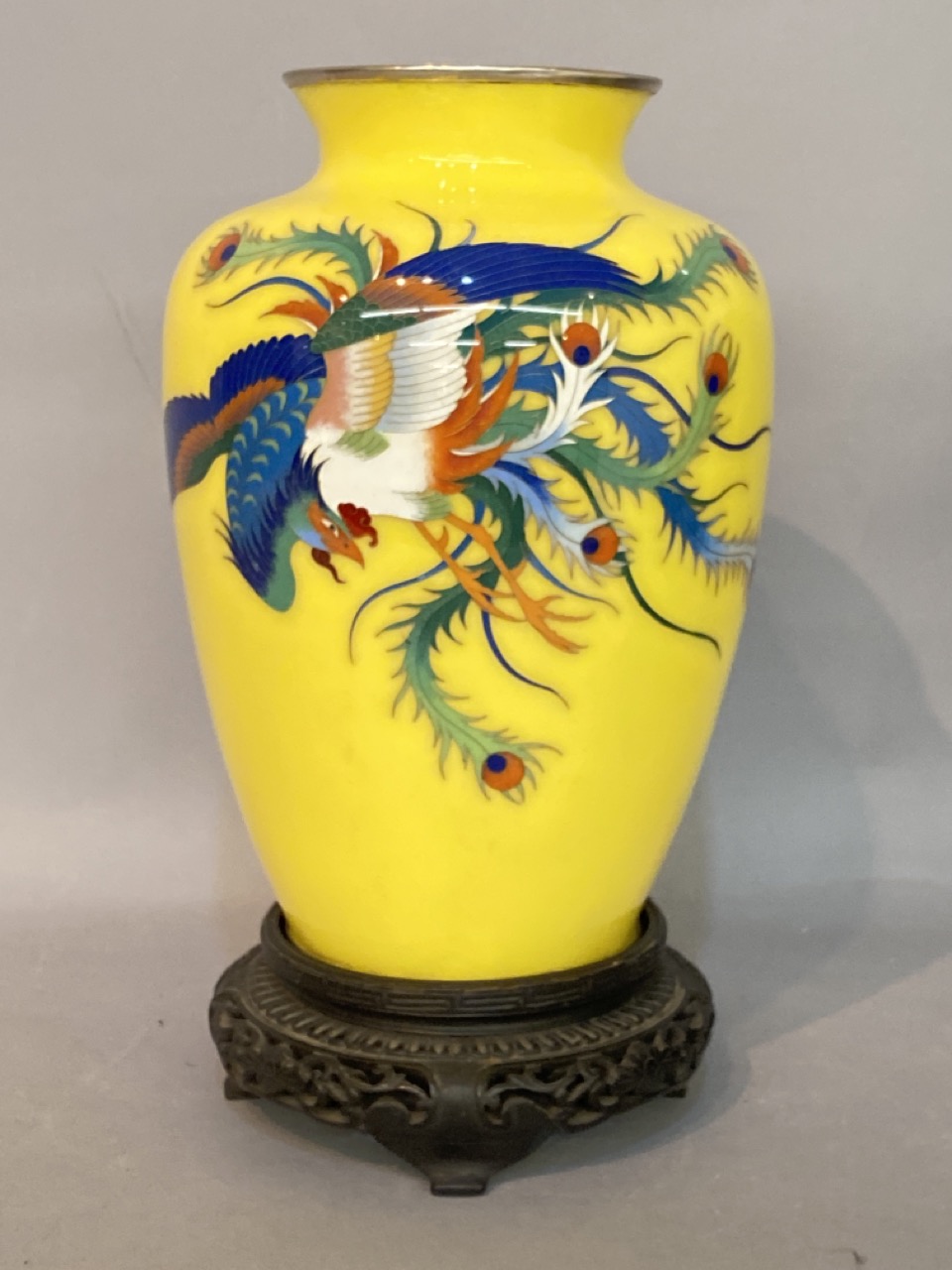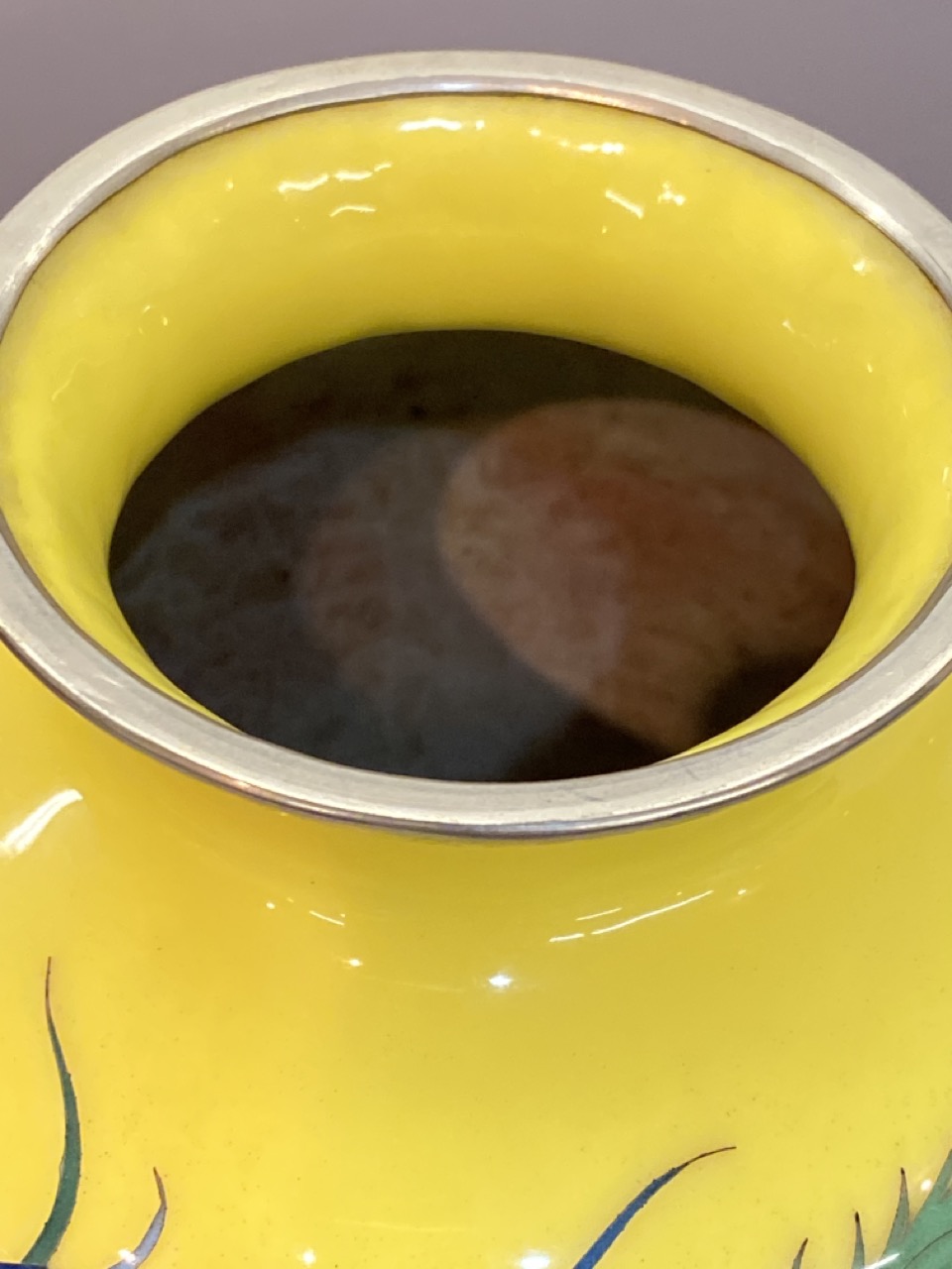 Chiense yellow enameled rooster vase. Pre-WW2 brought back.