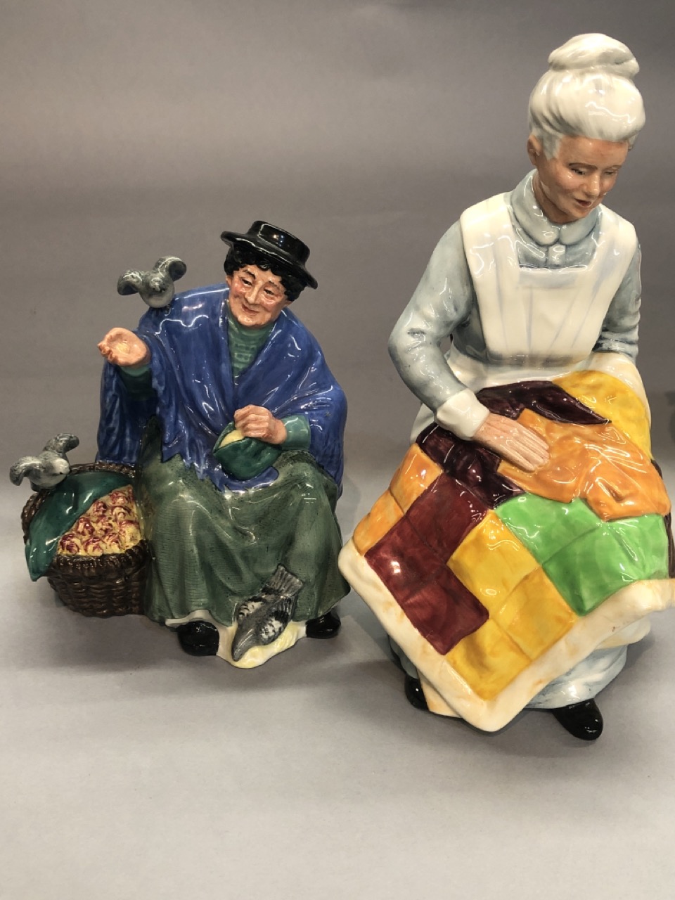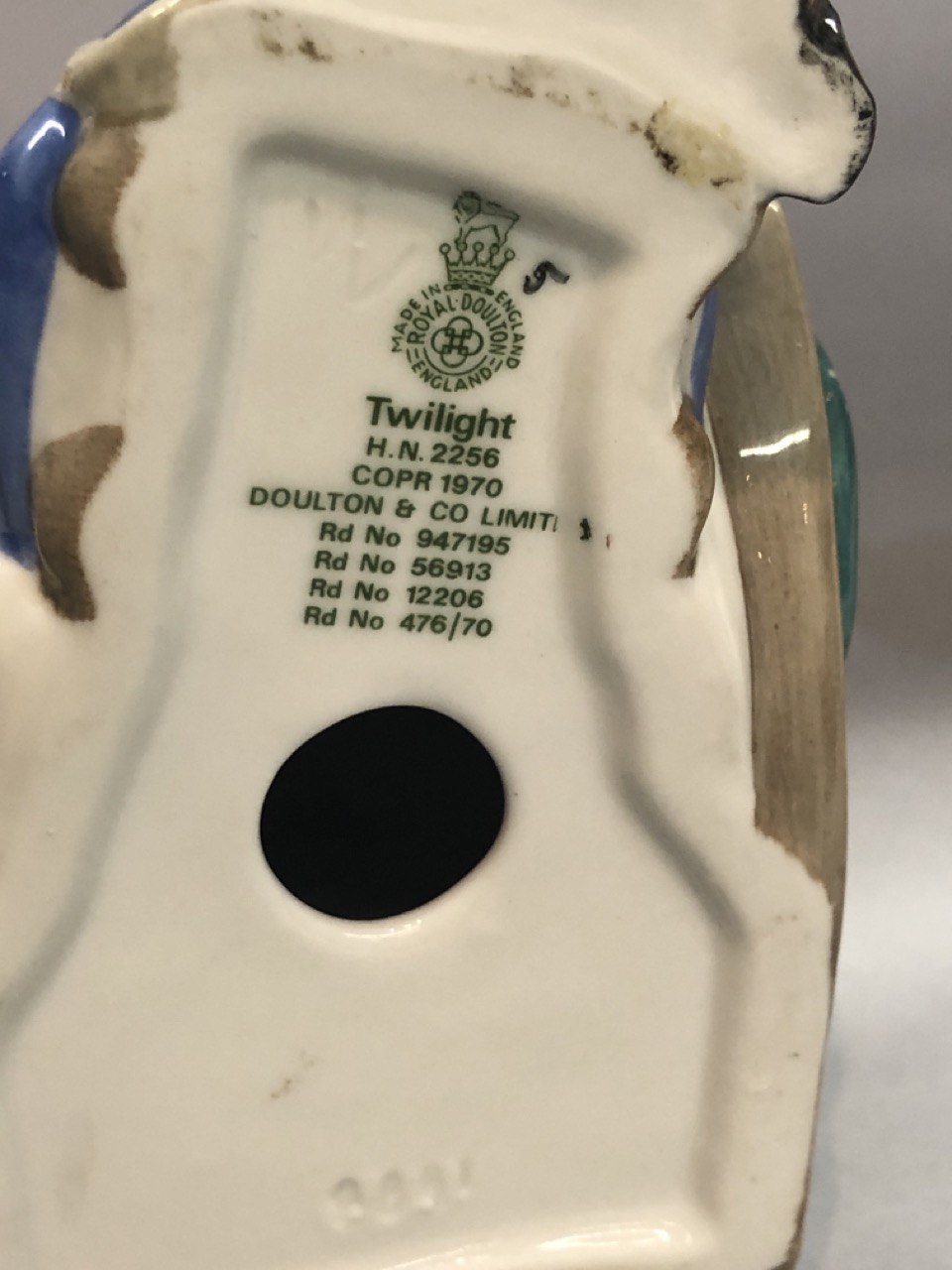 Royal Doulton porcelain figurine lot. Including Twilight, Pretty Polly, Eventide and Tuppence A Bag.