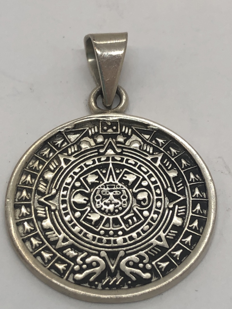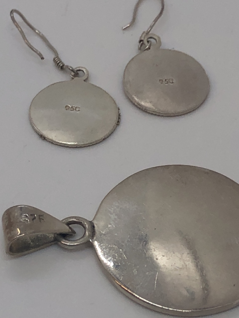 Mexican Sterling Silver Sun Dial Pendant & Earrings Set