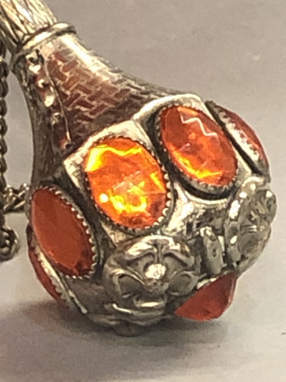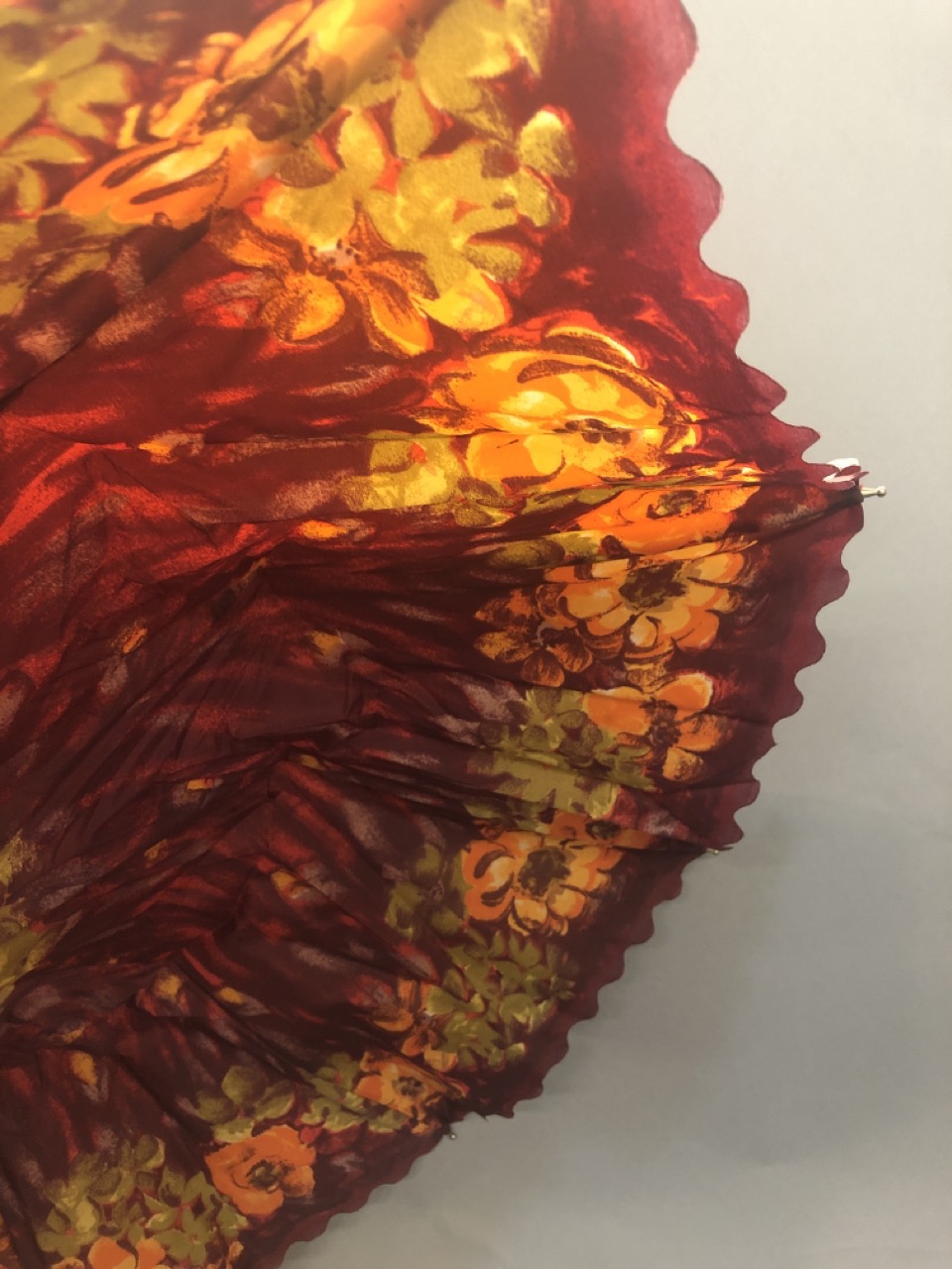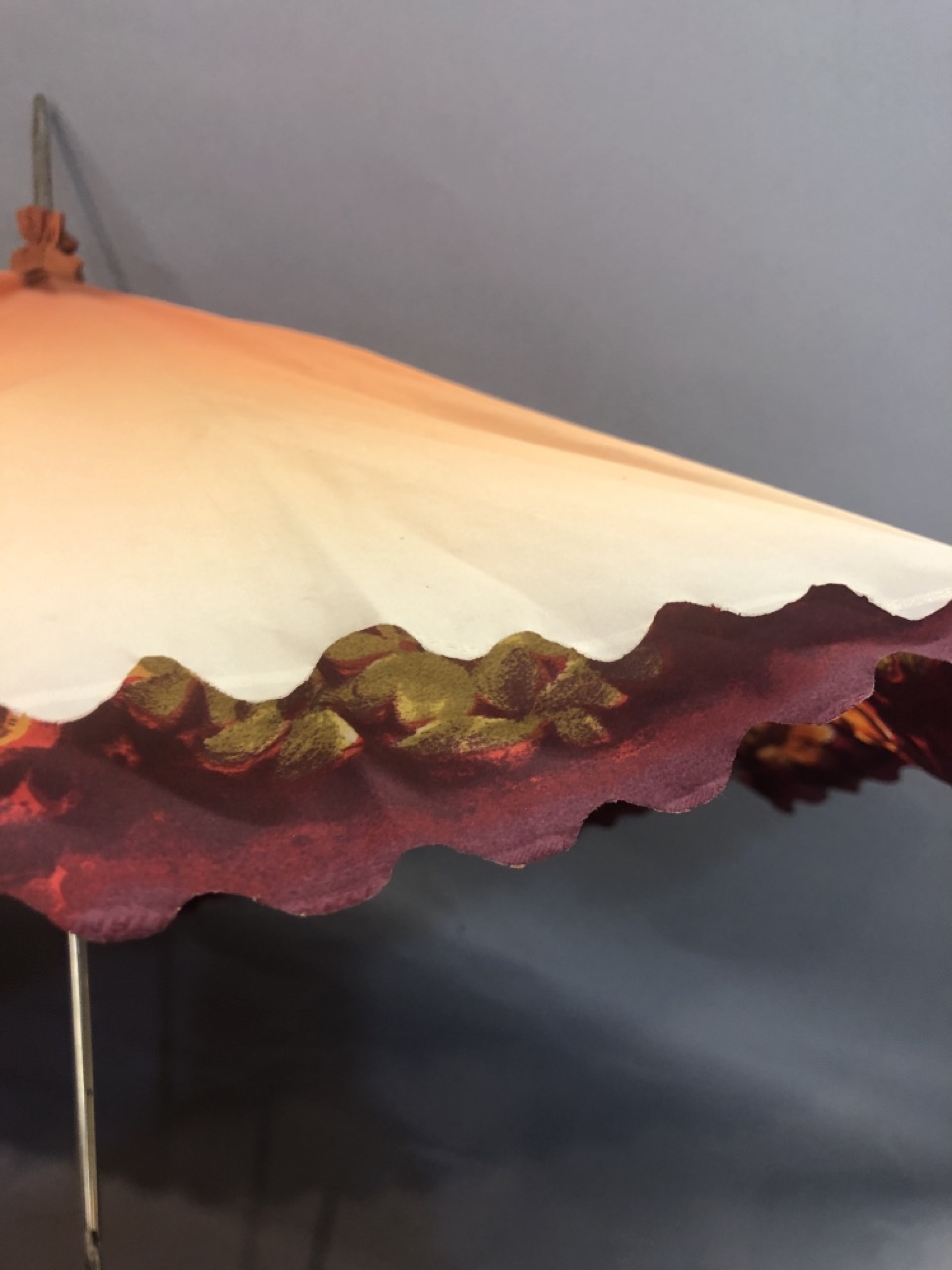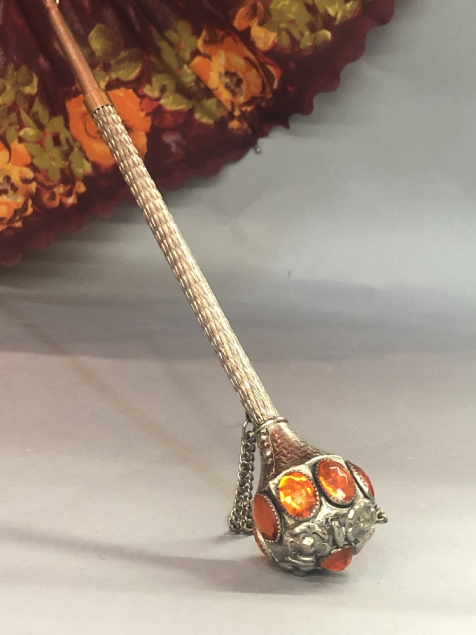 A fine vintage parasol with floral coverings and jeweled handle.