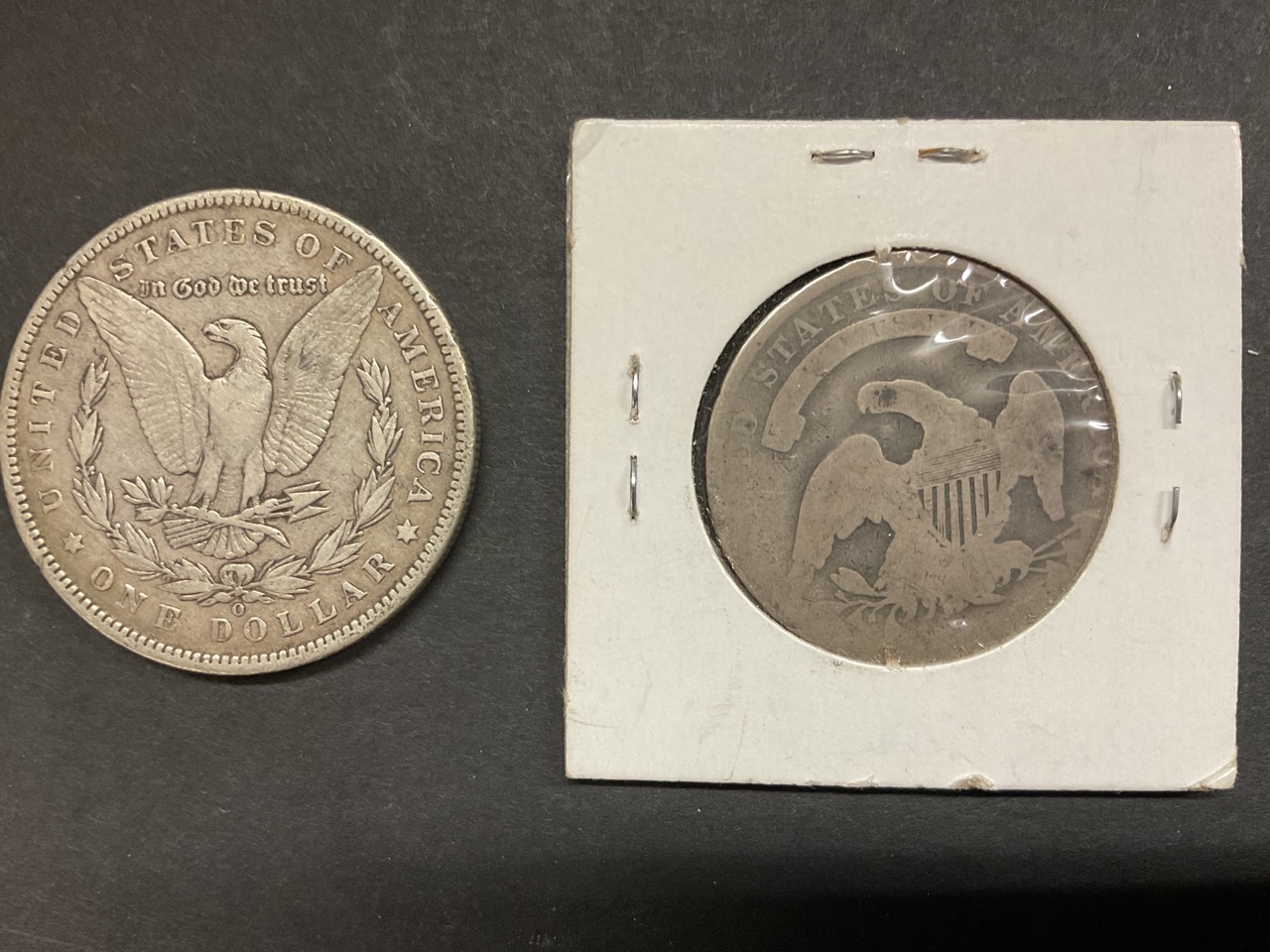 1896 O U.S. Morgan Silver Dollar and 1835 Silver Half Dollar With Edge Lettering