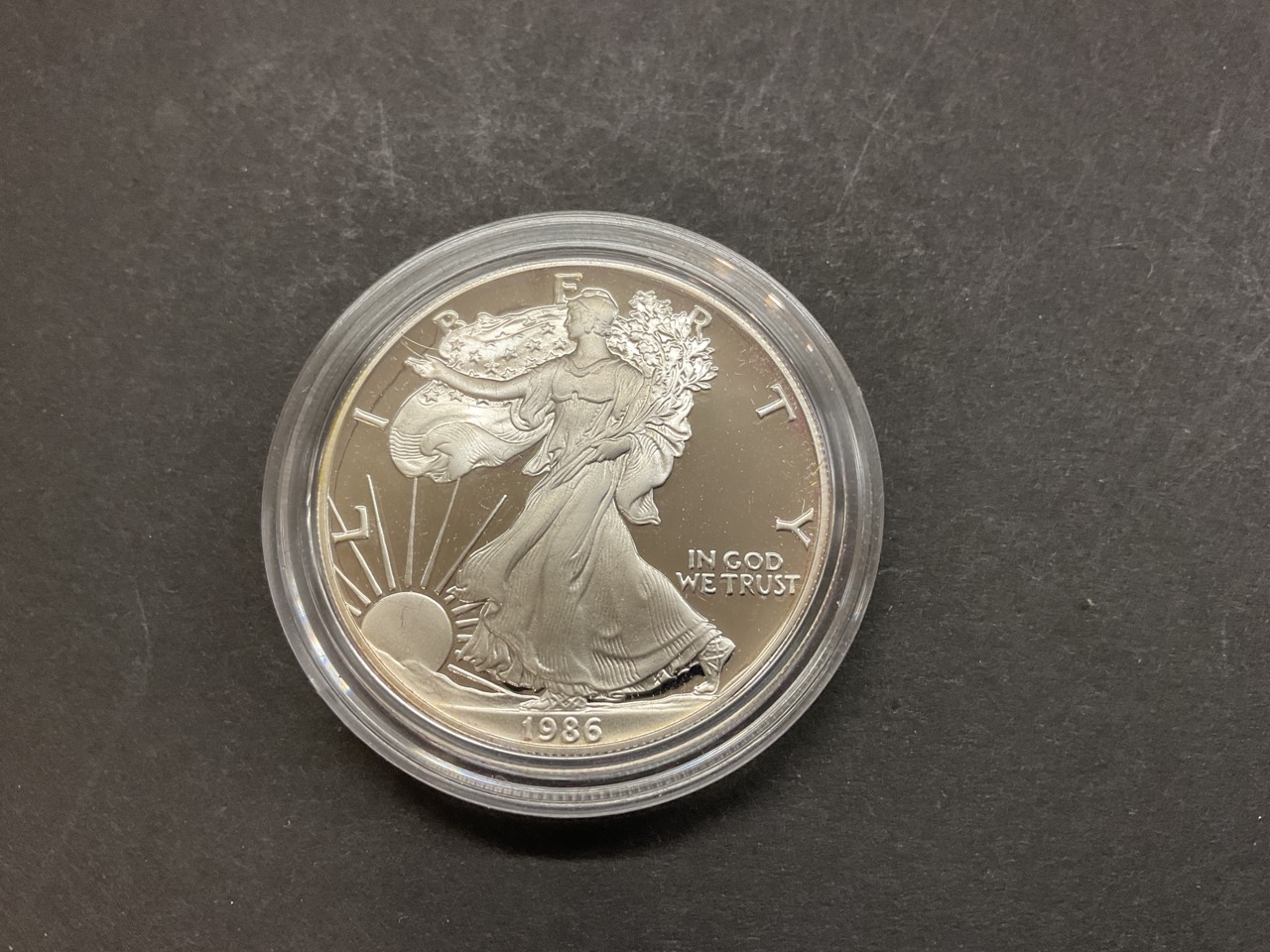 1986 S Proof American Silver Eagle Dollar. Original Government Issue Packaging.