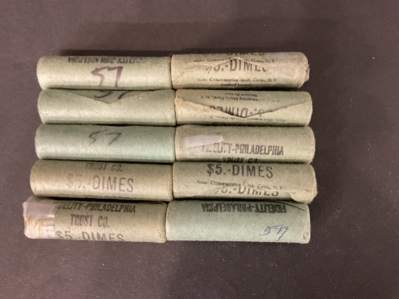 10 Rolls Silver Dimes, 500 total. Mixed pre-1964 Roosevelt and possible Mercury. Not searched