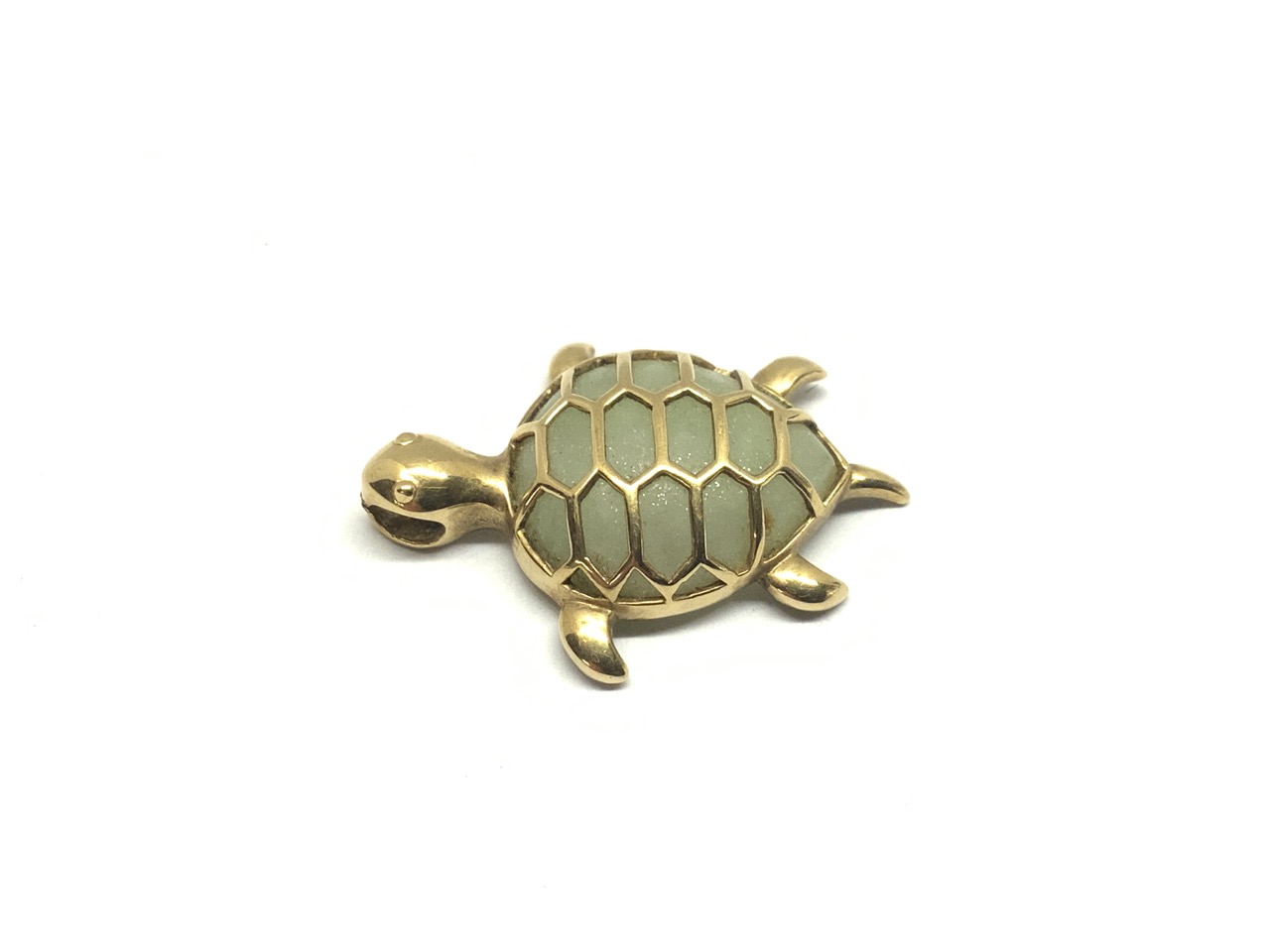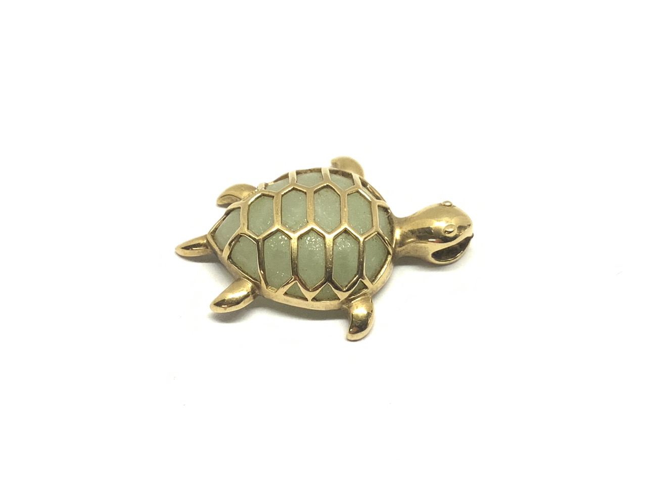 10K y.g. Jade turtle pendant.