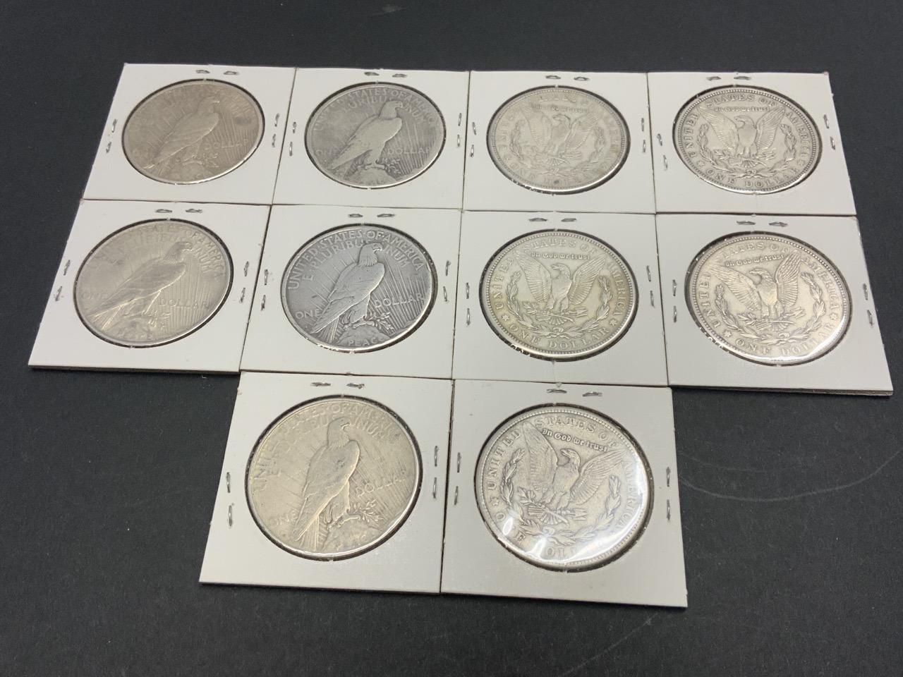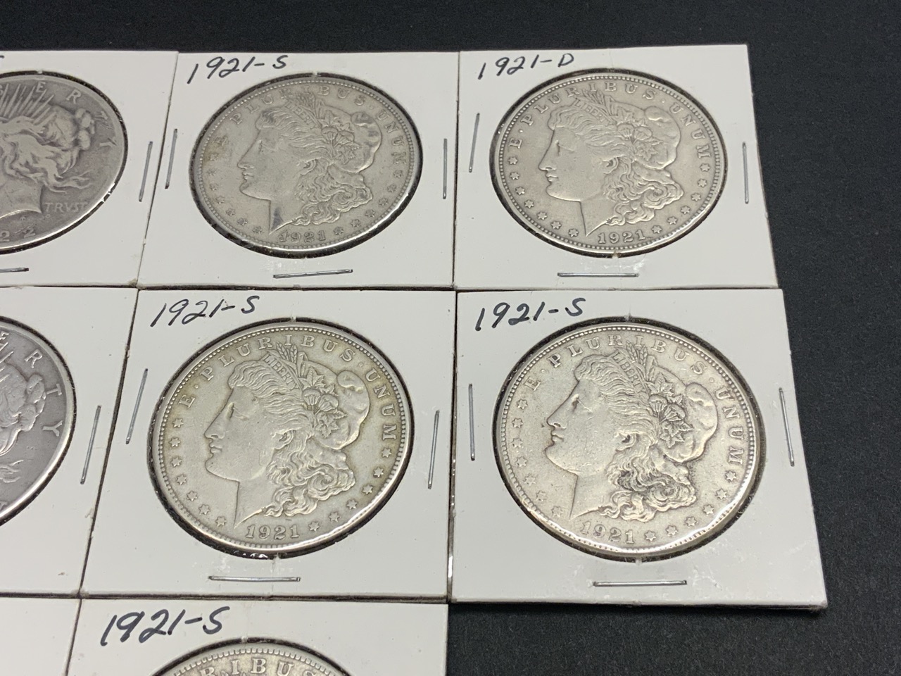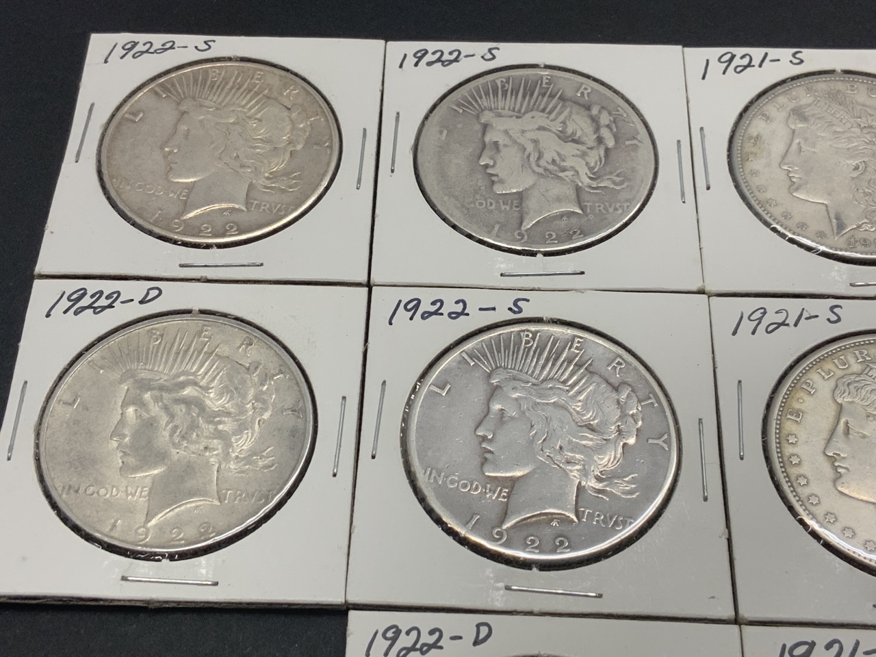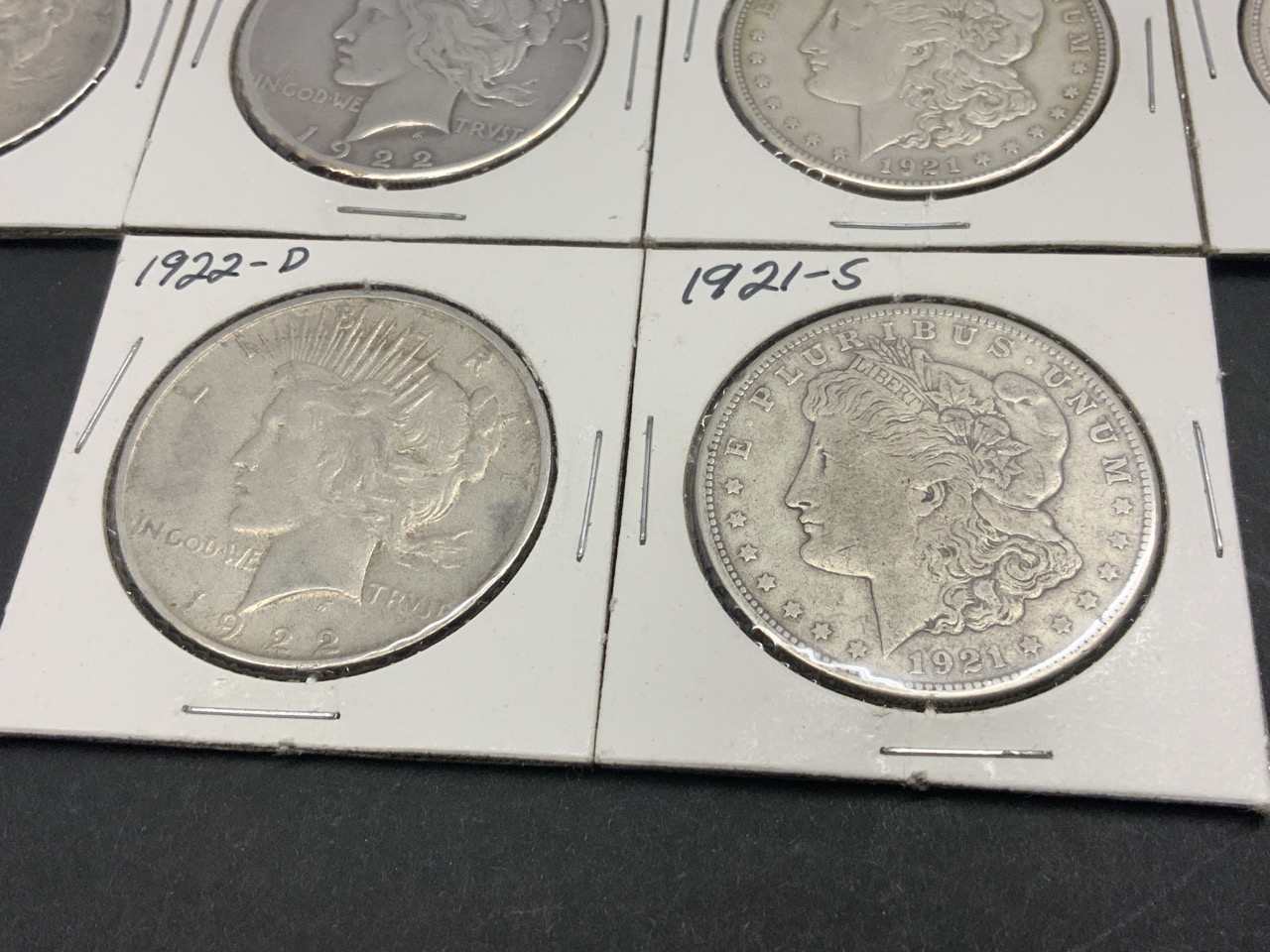 Lot of 10 Morgan Silver Dollars (5) 1921 Morgan’s (5) 1922 Peace Dollars