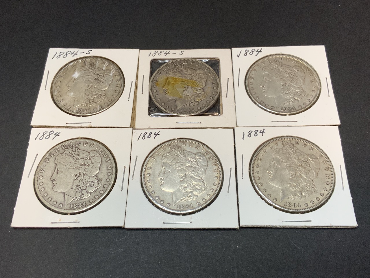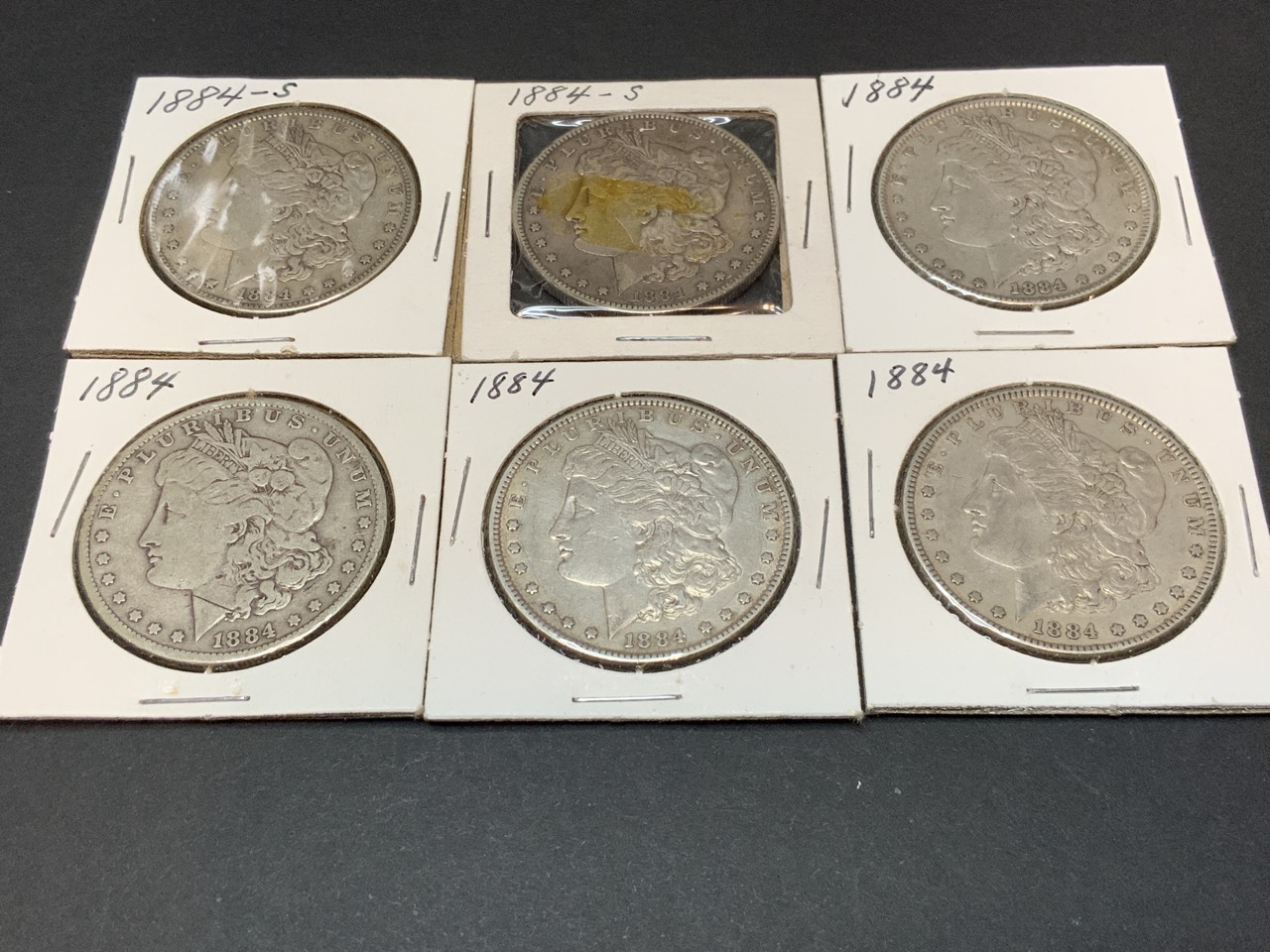 Six (6) 1884 Morgan Silver Dollars 2-S 4-P