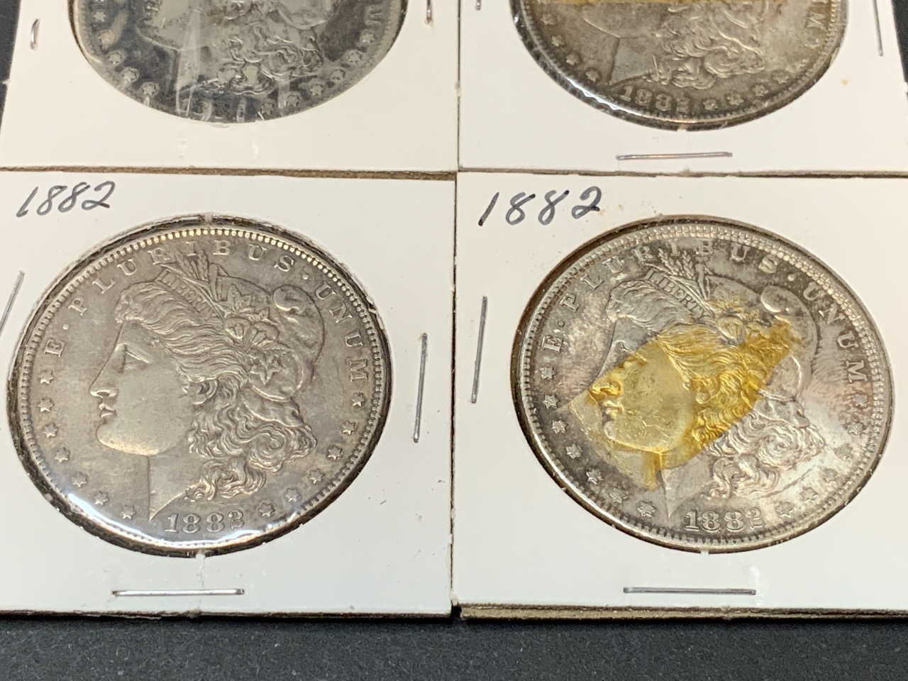 Four (4) 1882 Morgan Silver Dollars 3-P 1-S
