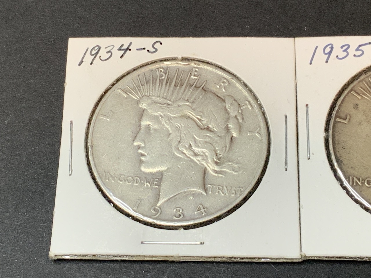 Two (2) U.S. Silver Peace Dollars 1934-S/ 1935-P