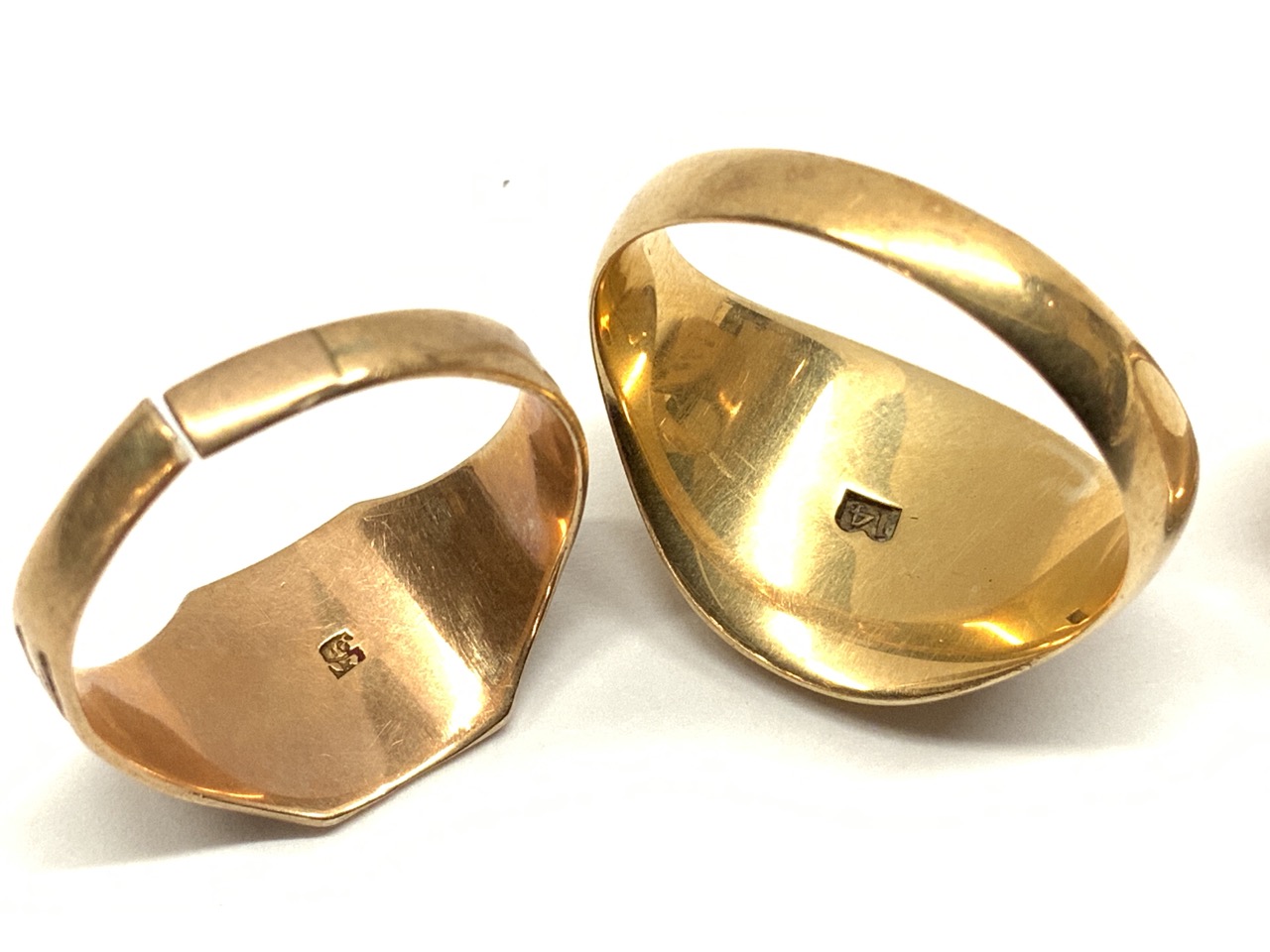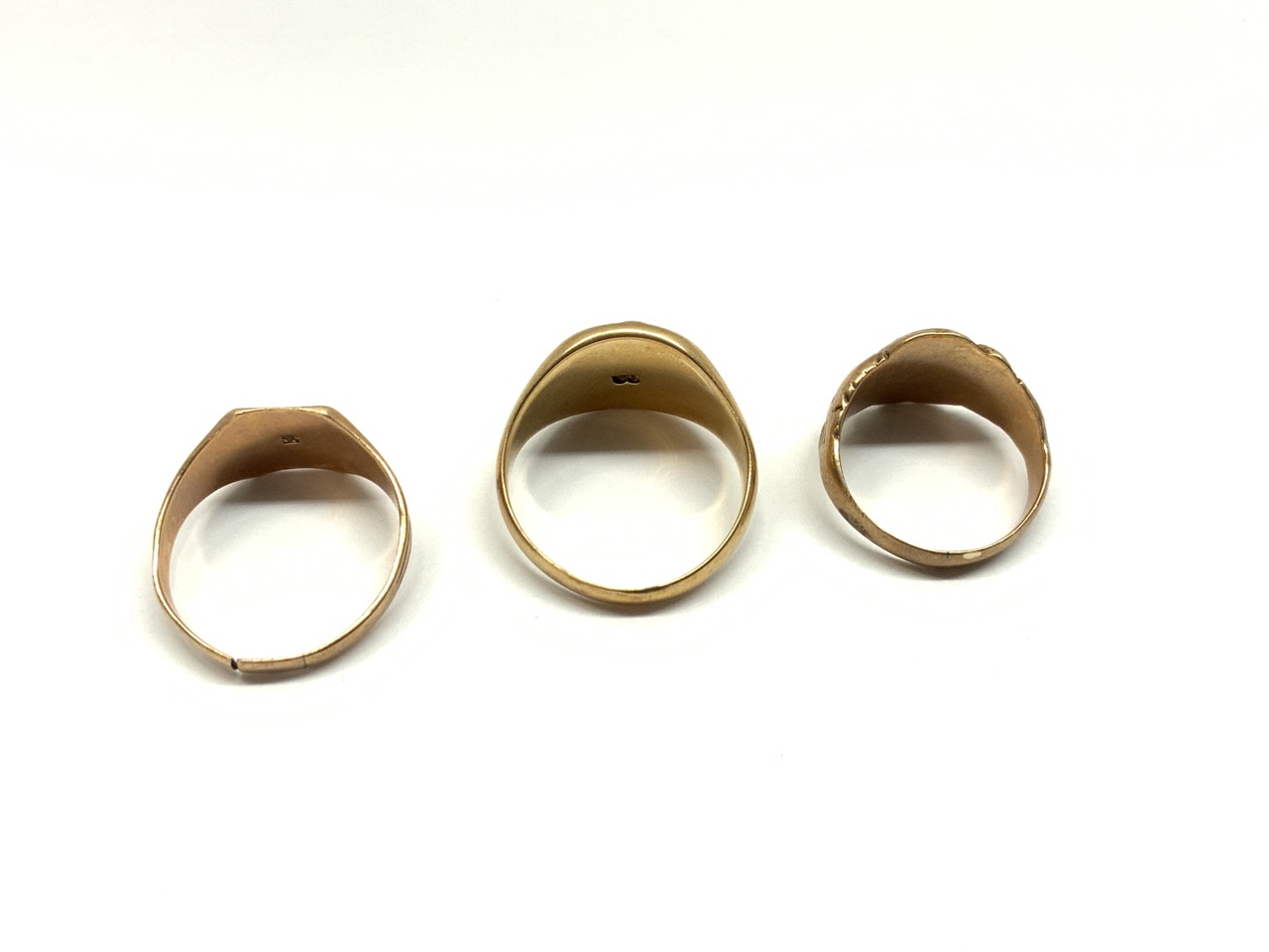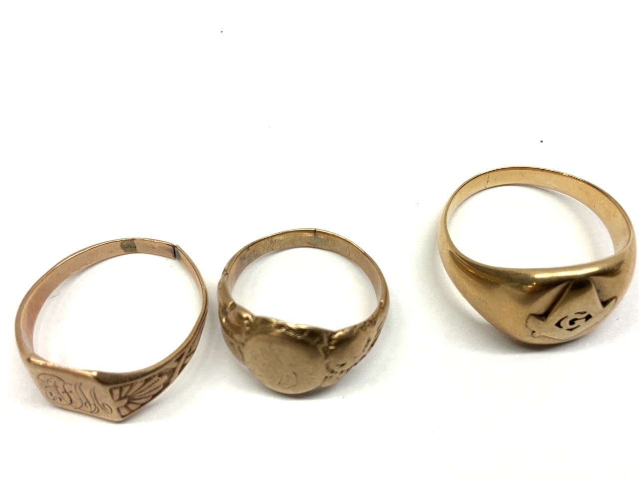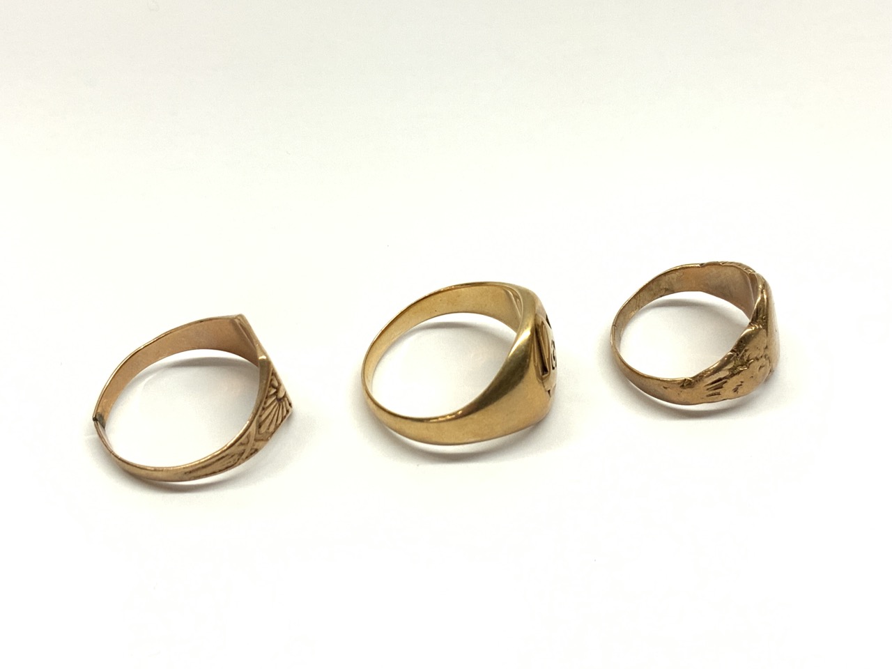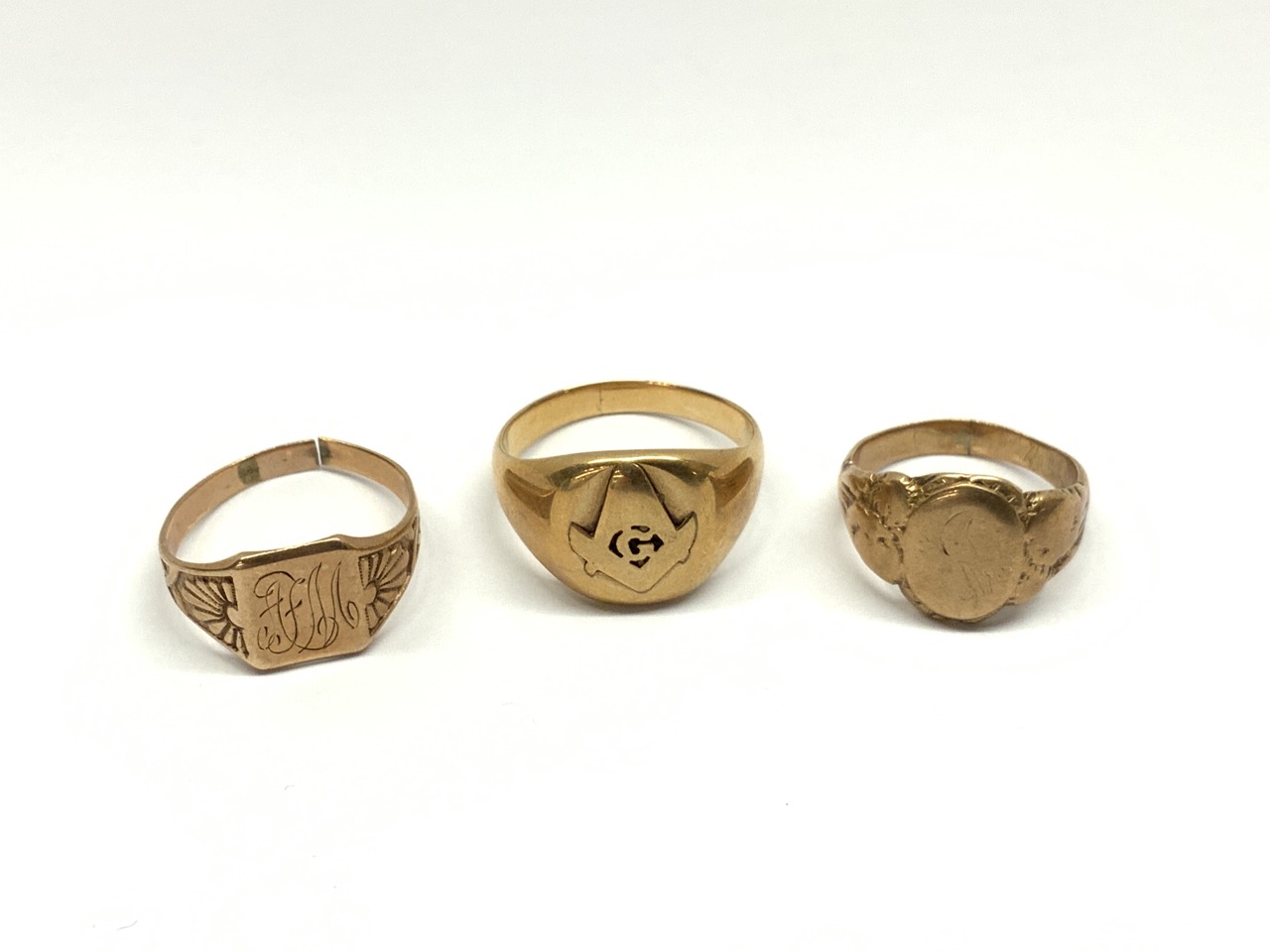 Three (3) Estate gold rings. Masonic and insignia style.