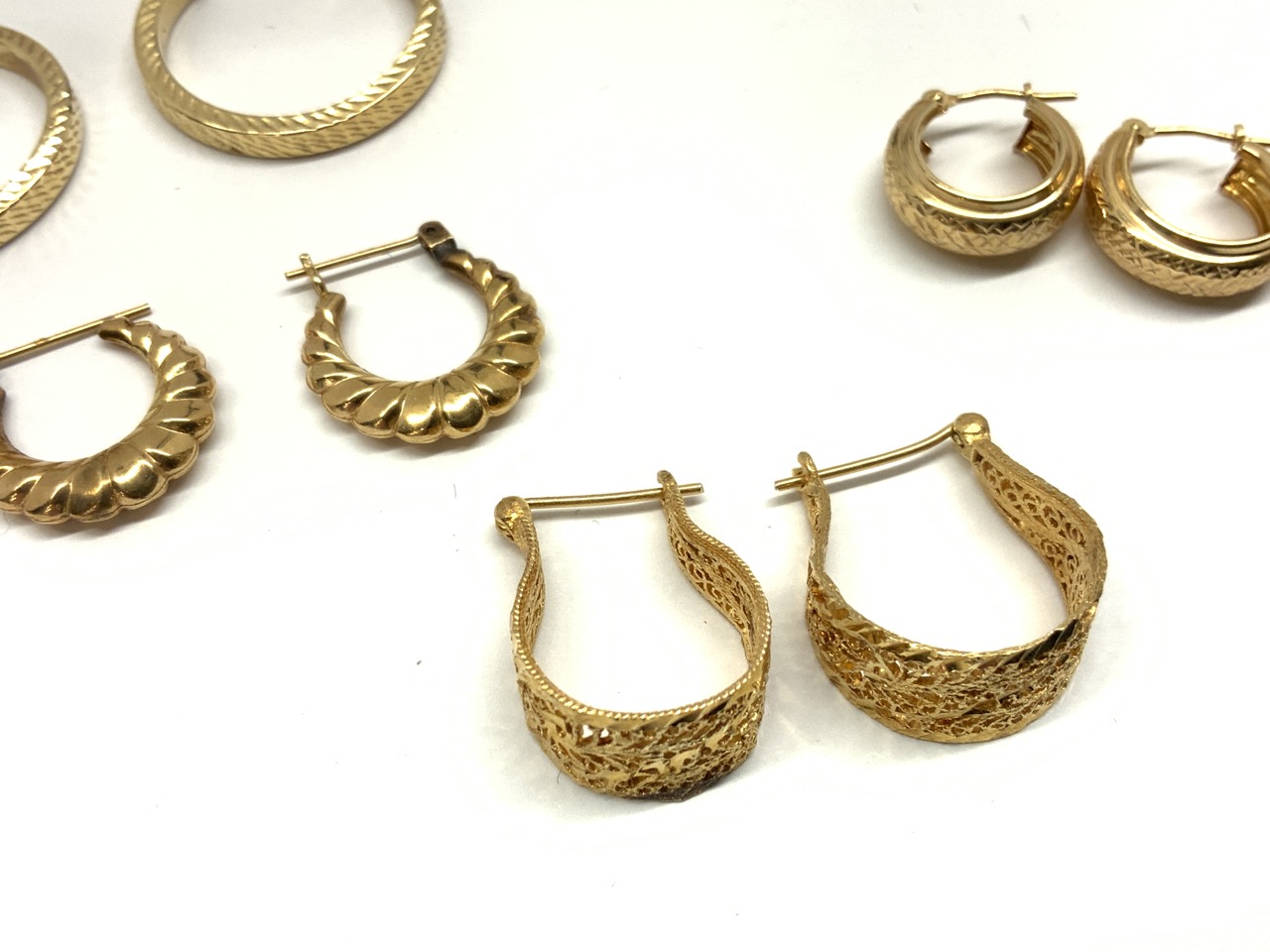 Six (6) Pairs of 14K Gold Hoop Earrings.