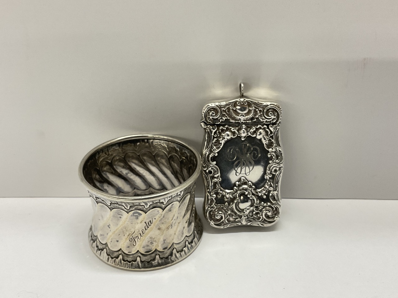 800 Silver Napkin Ring, Match Safe,Salt & Pepper Weighted Candle Sticks