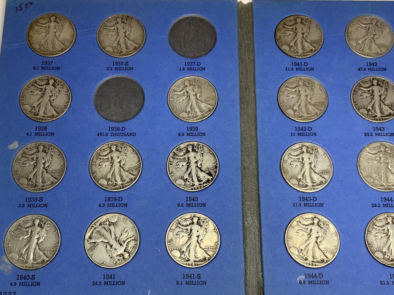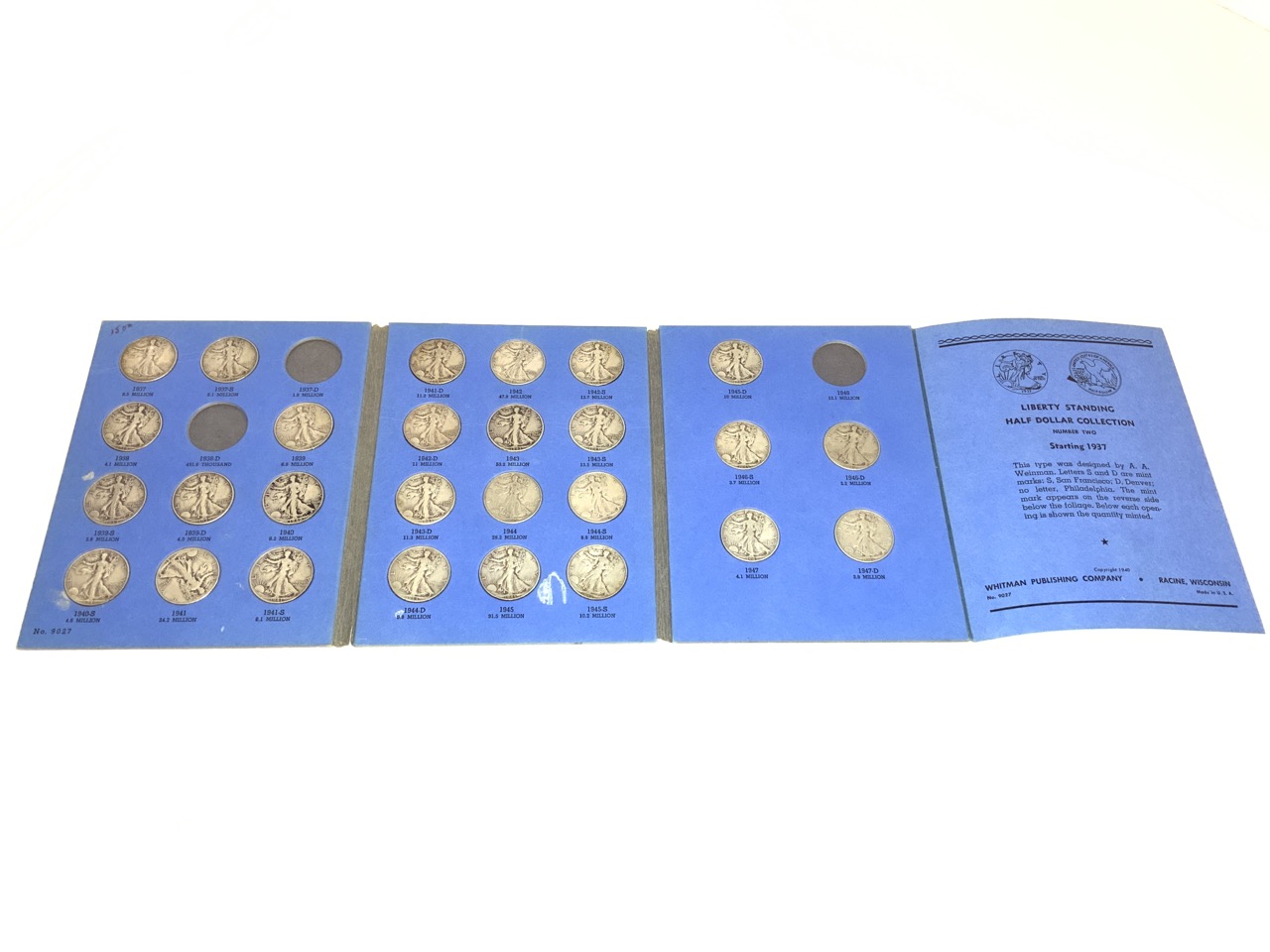 Walking Liberty (Liberty Standing) Half Dollar Whitman Album Containing 27 Half Dollars.