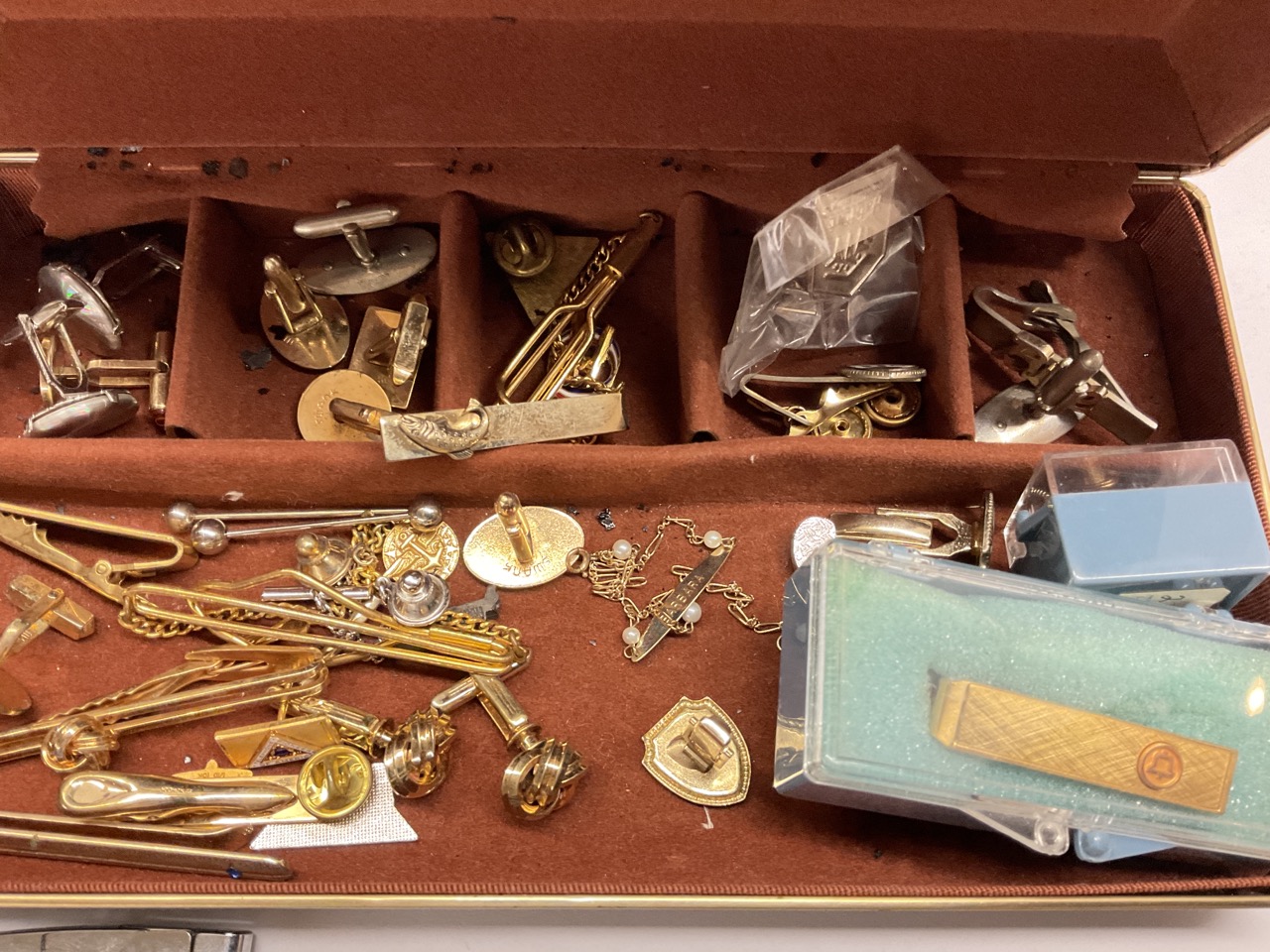 Estate Men's Jewelry Lot. Alaskan gold nuggets, 14K seed pearl bracelet, costume cufflinks, lighters etc.