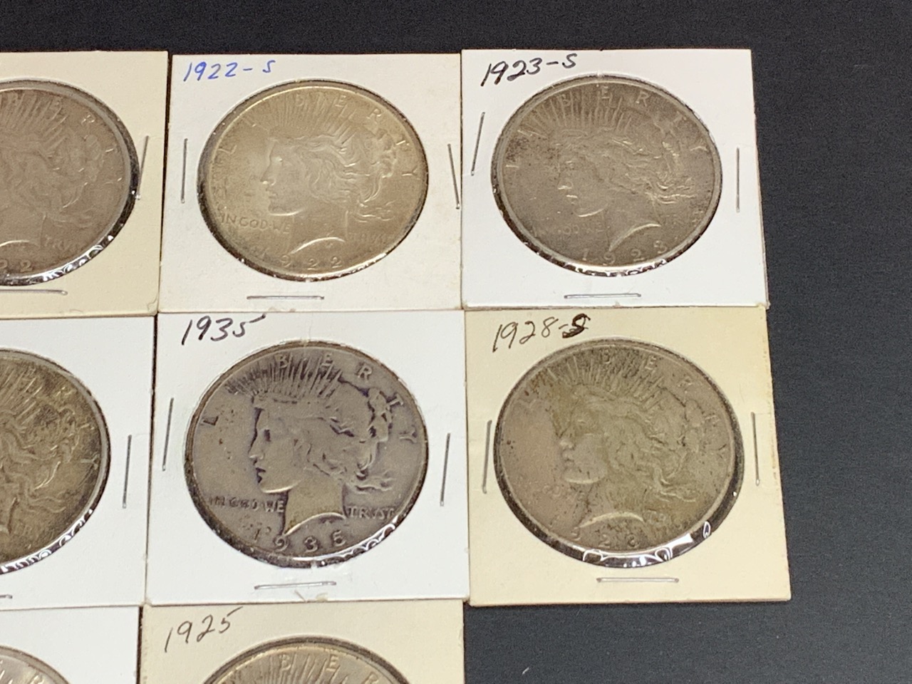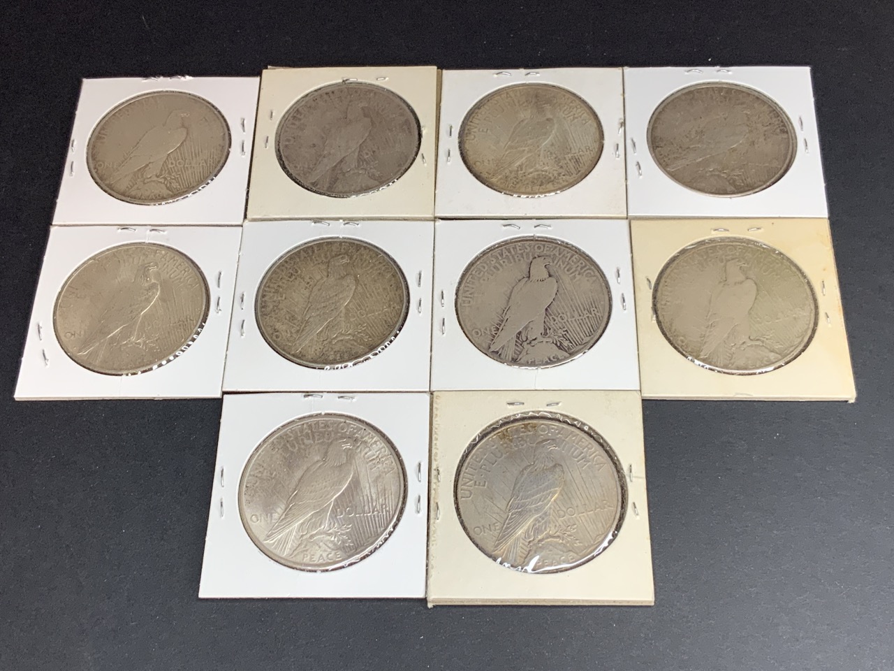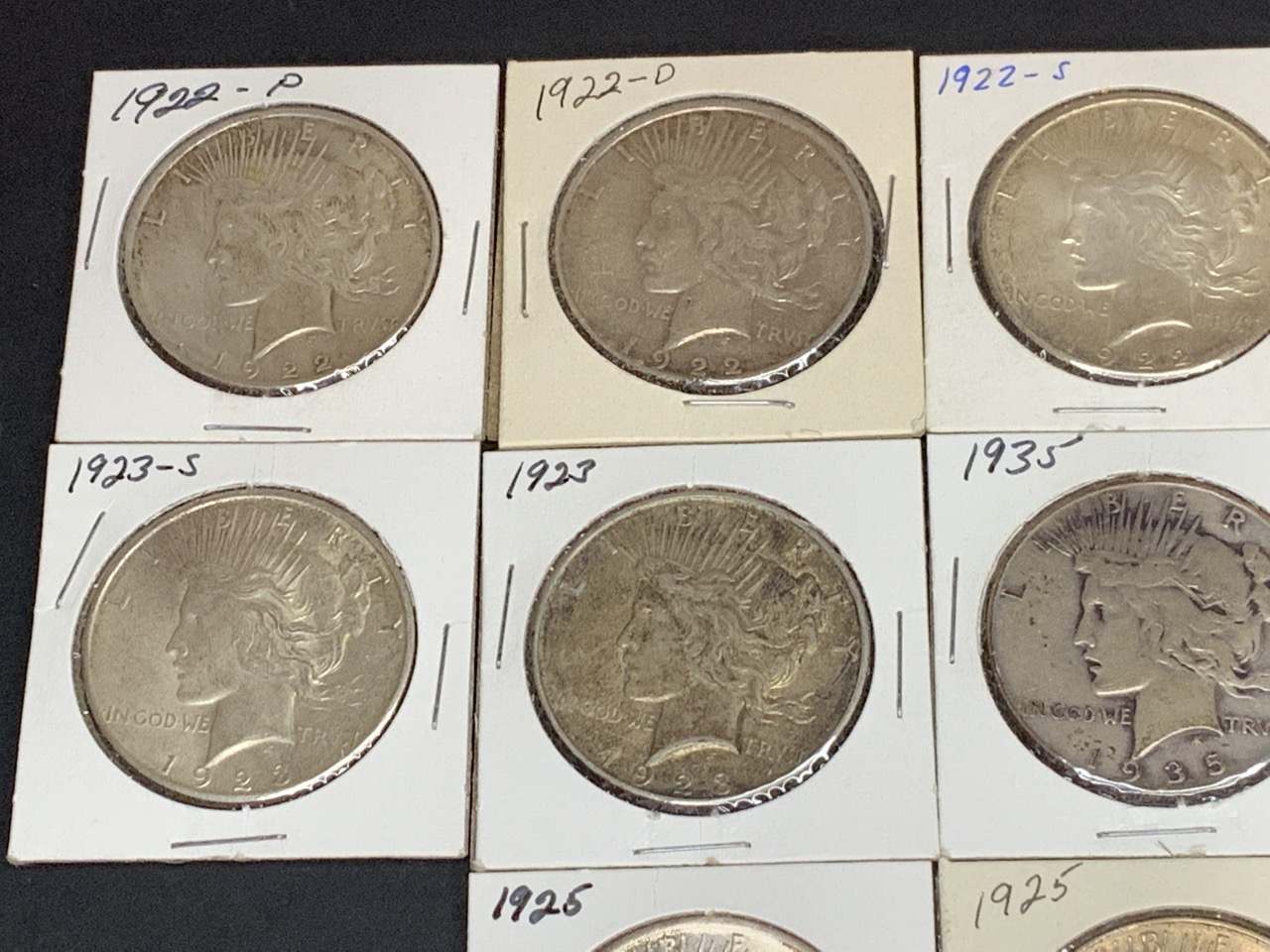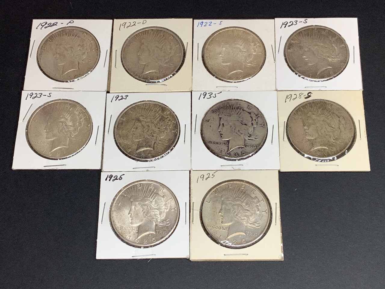 (10) Silver Peace Dollars- 22P, 22D, 22S, 23S, 23S2, 23P, 25P 2, 28S, 35P