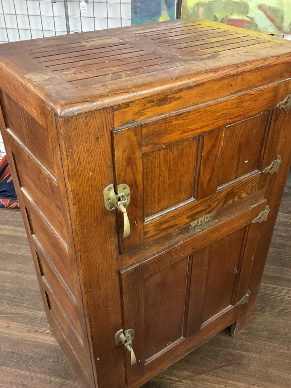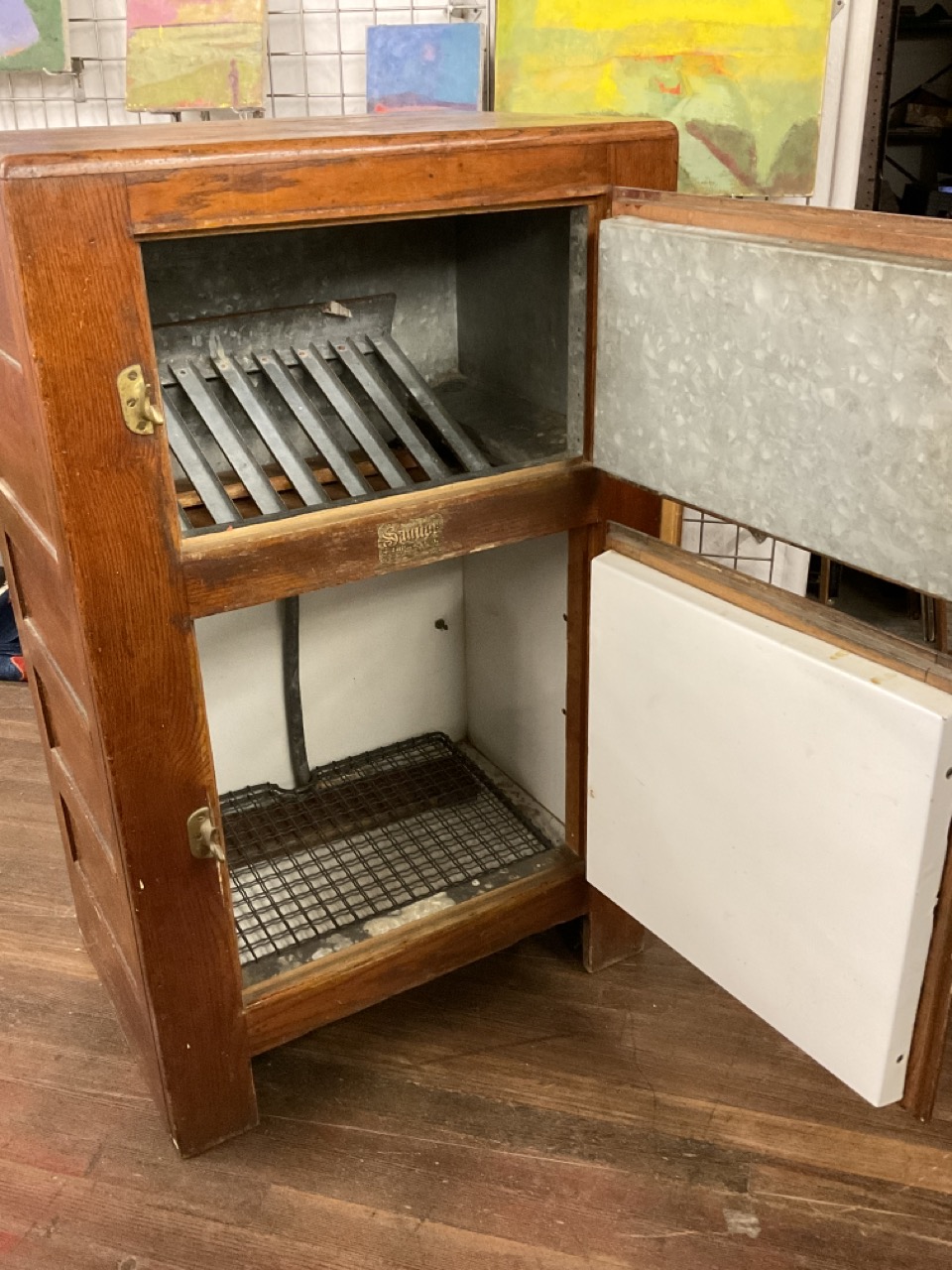 Oak two door ice box.