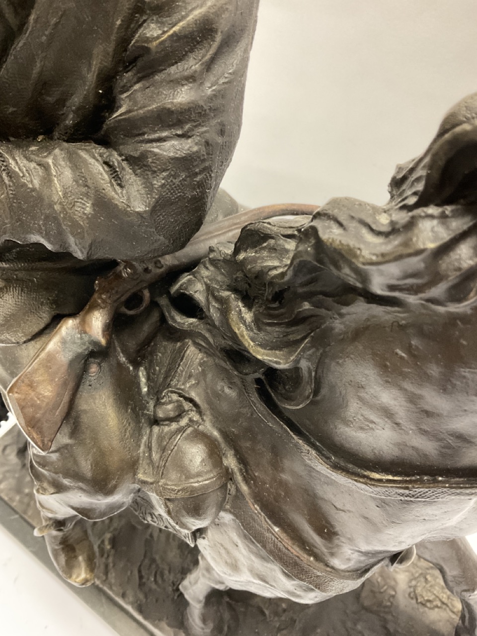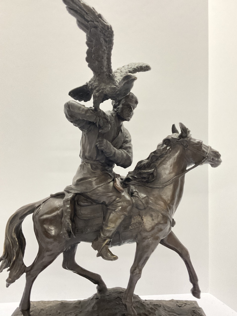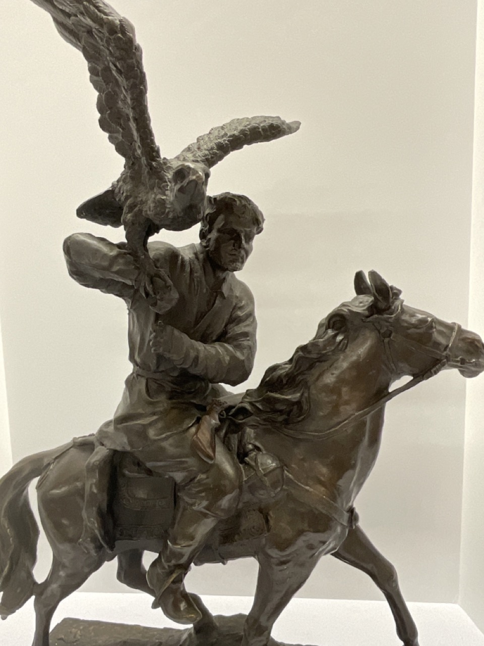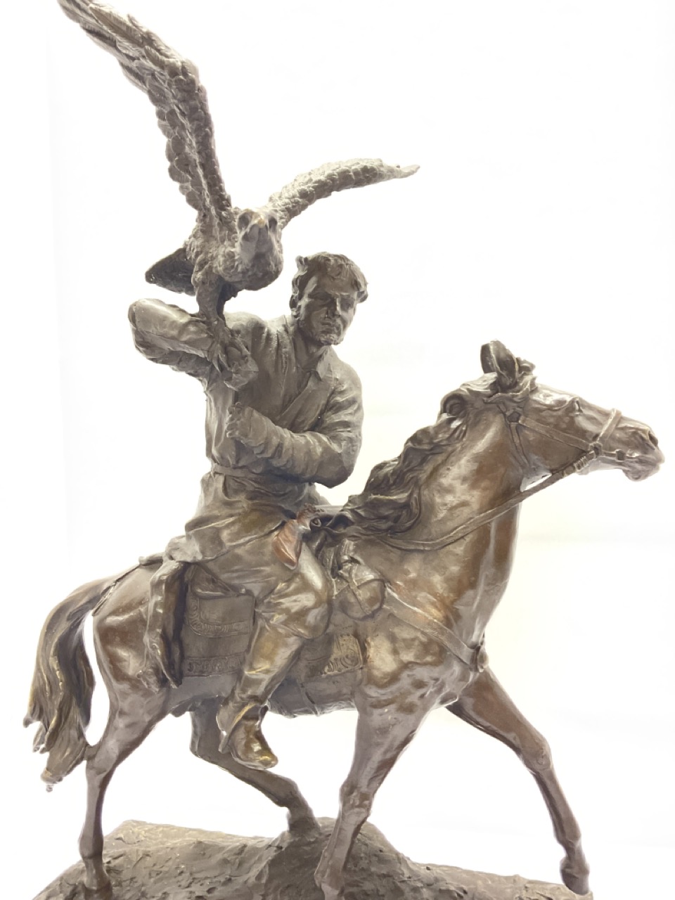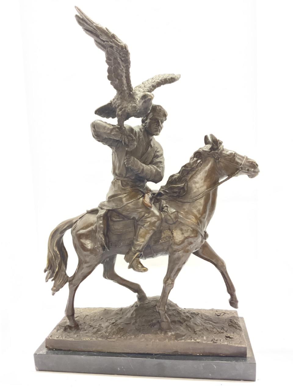 Bronze Falconer with Falcon on horseback.