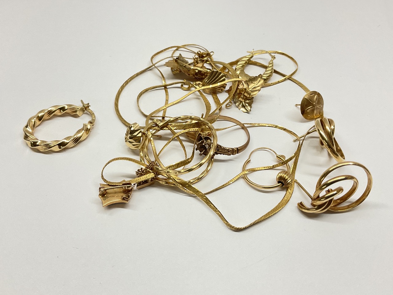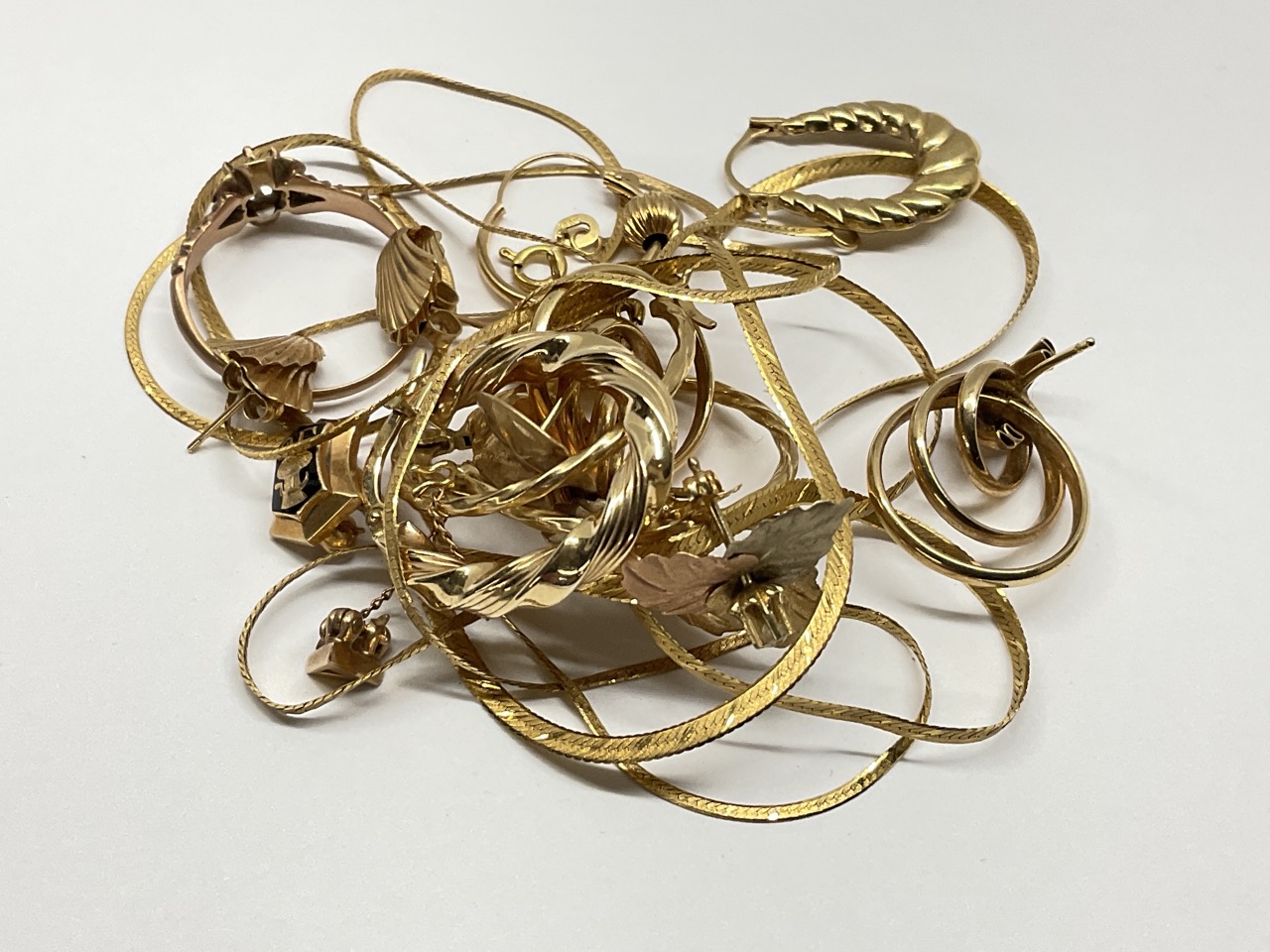 Compiled estate 14K Gold jewelry group. As seen in photograph preview.
