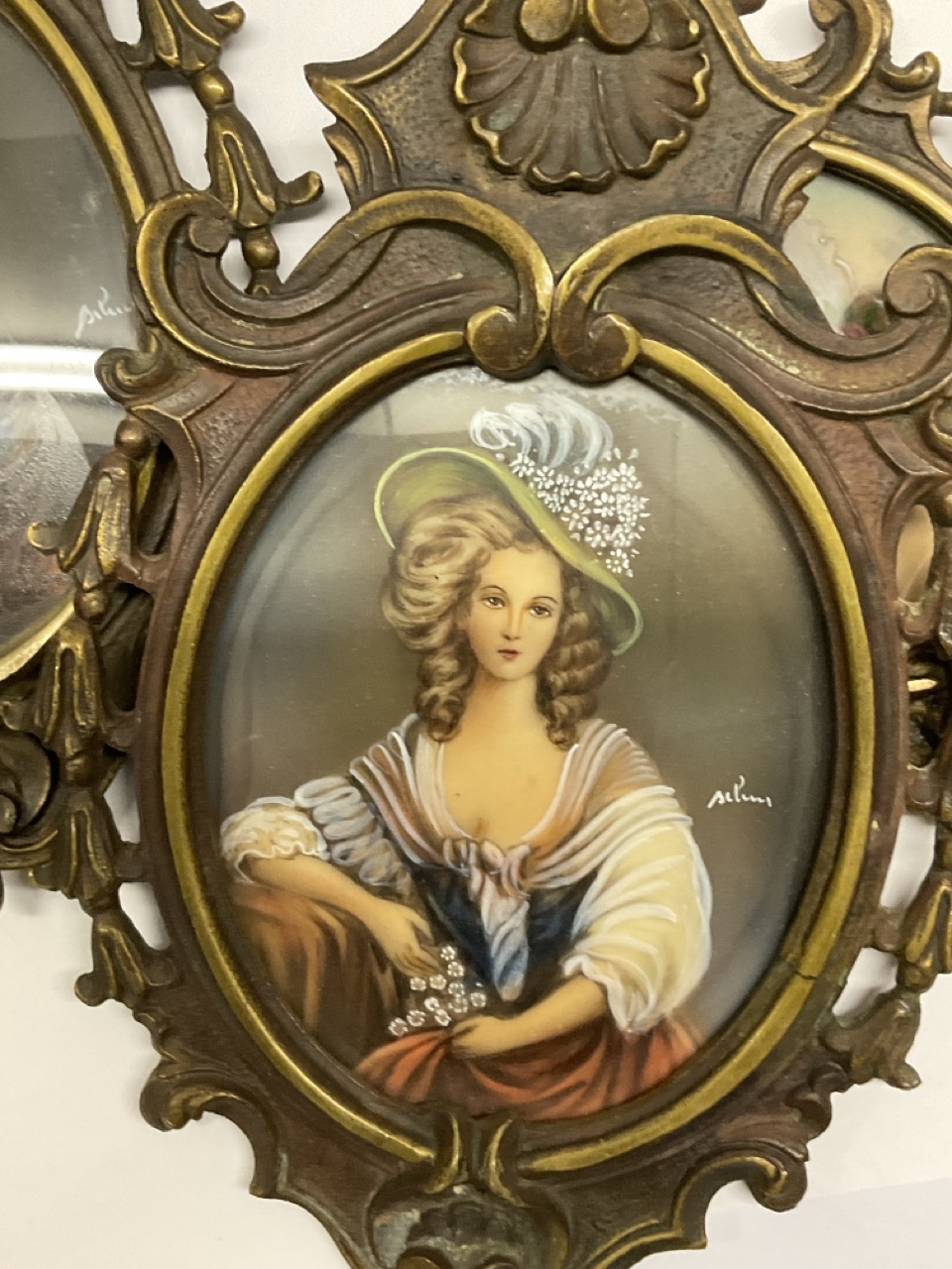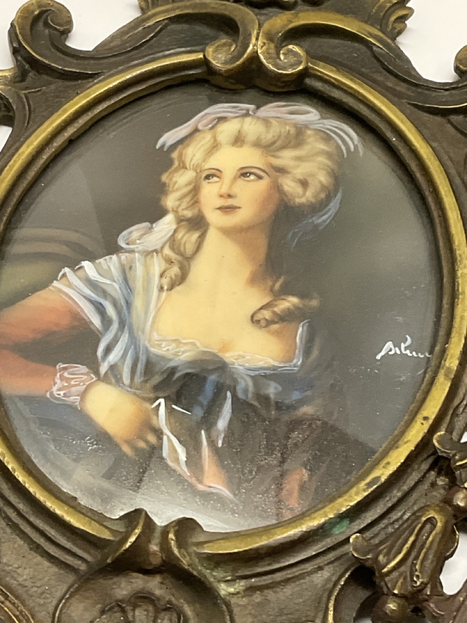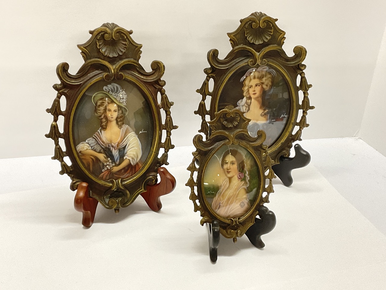Three (3) Miniature Oil Paintings. Late 19th or early 20th century with frames. Illegibly Signed.