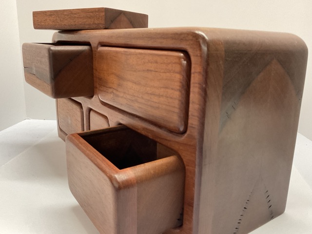 African hardwood jewelry box. Kevazingo Africa Honduras Mahogany Wong Art Williams and Dawn Hankins NY No-1277 4-88