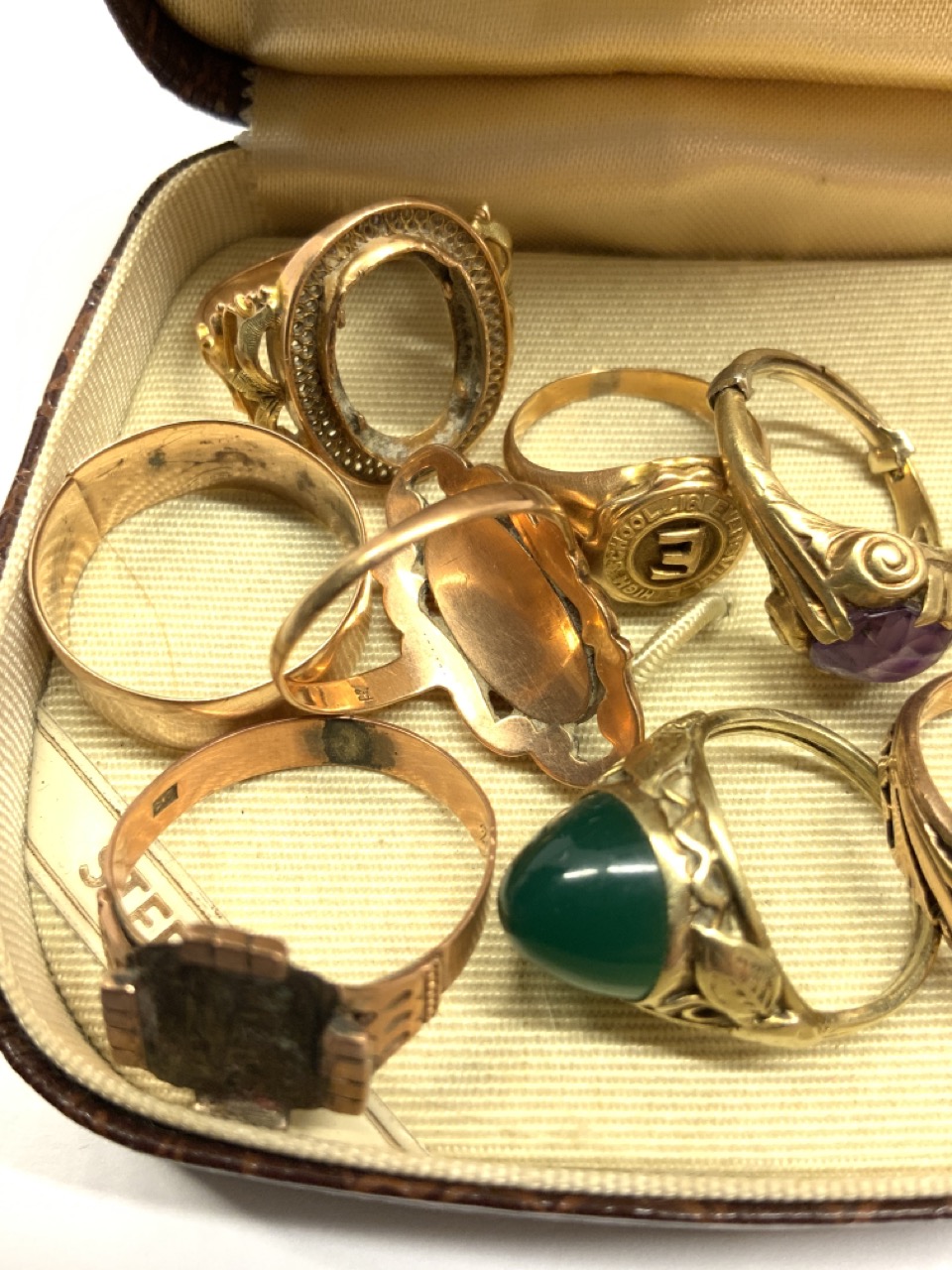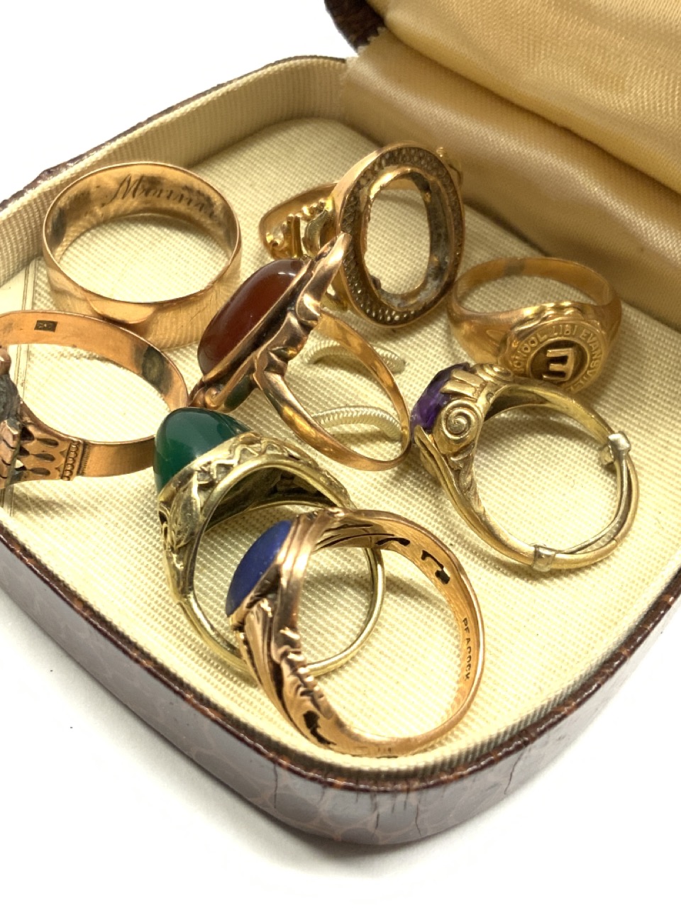 Compiled estate gold rings. Mostly 14K, some 10K tested,