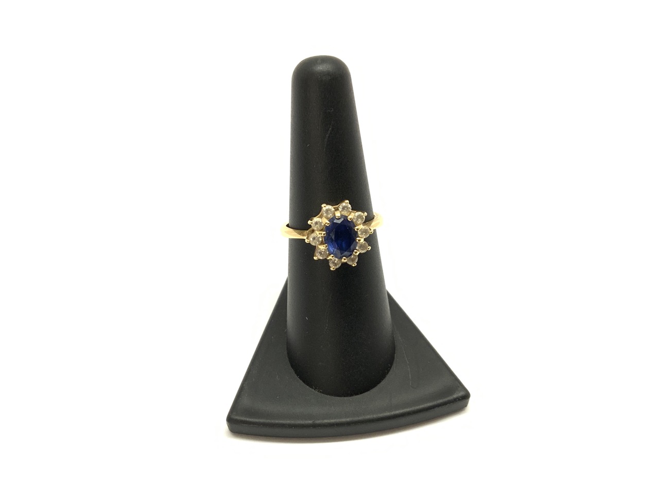 14K Blue Sapphire And CZ diamond ring.
