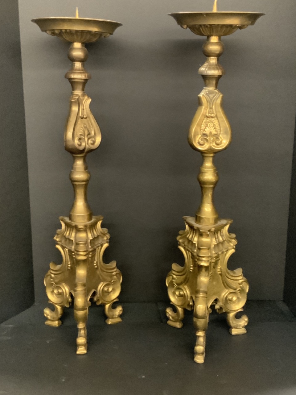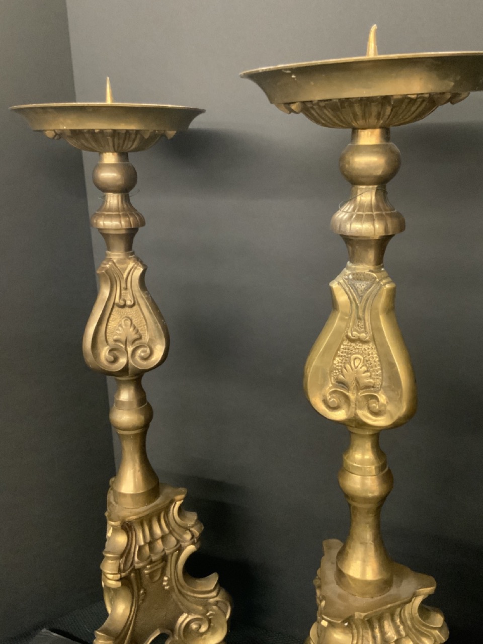 A pair, Brass altar stick candle pillars.