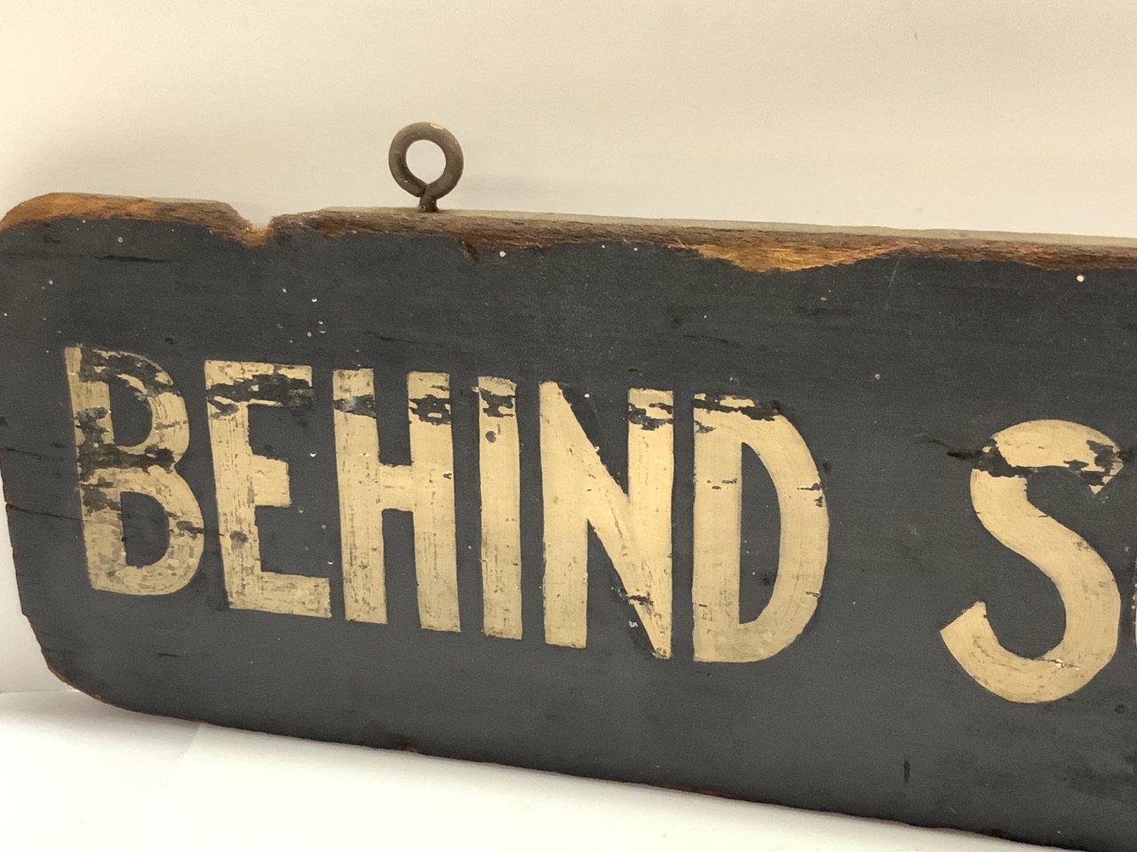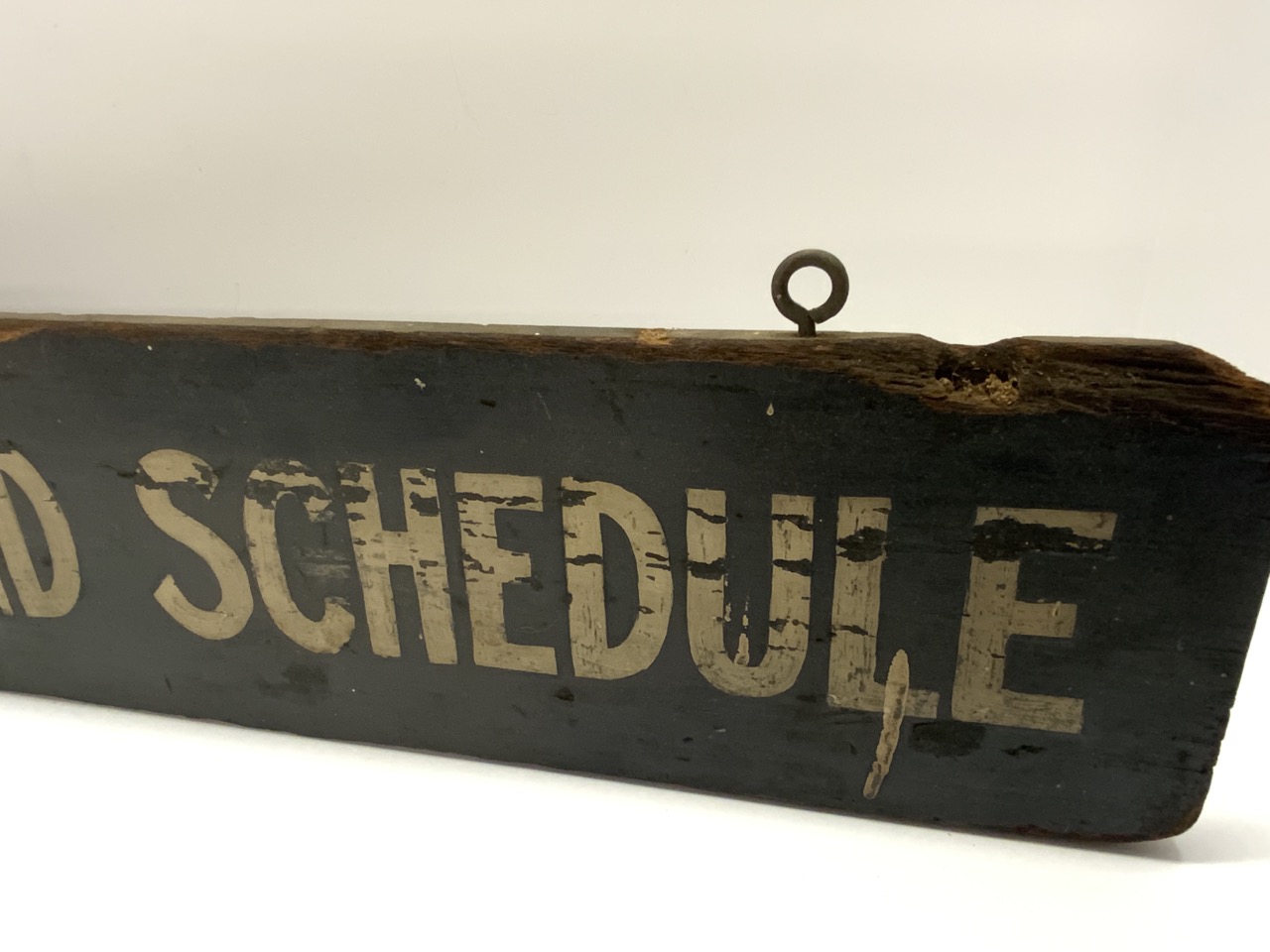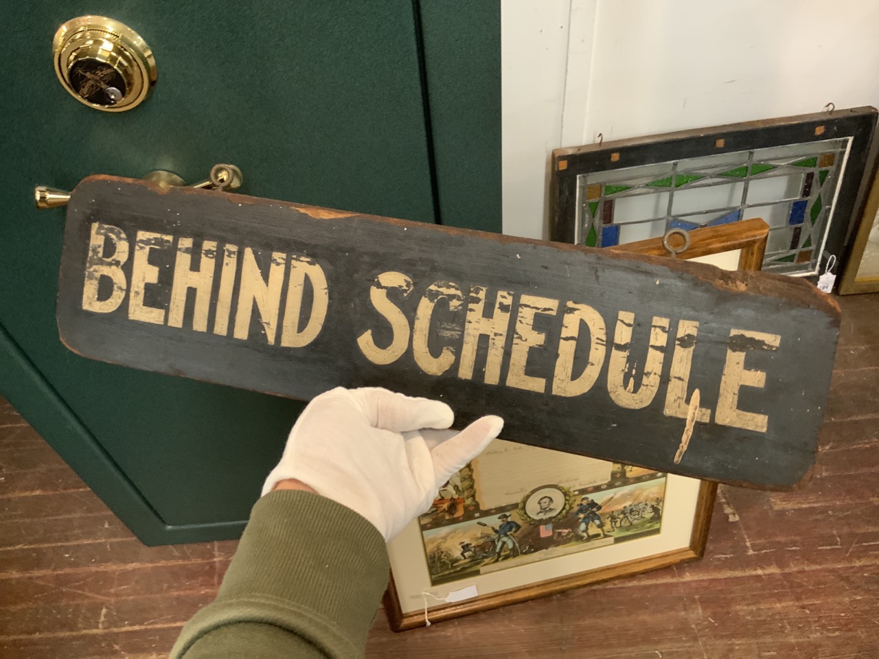Orignal "Behind Schedule" Railroad Sign. Early 20th century. From New Jersey Estate.