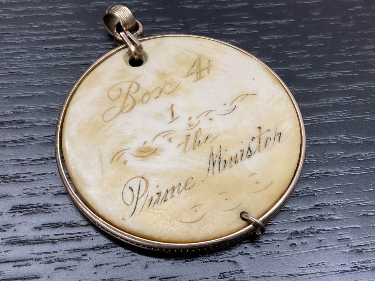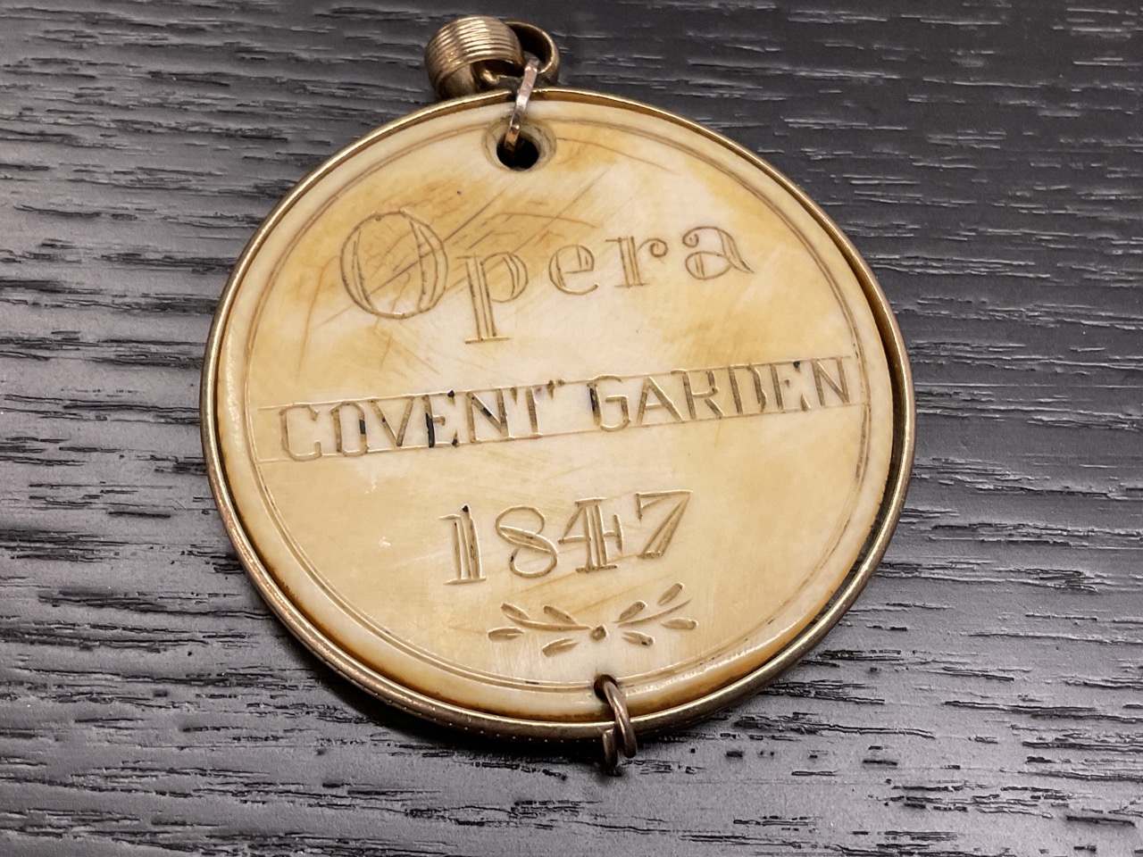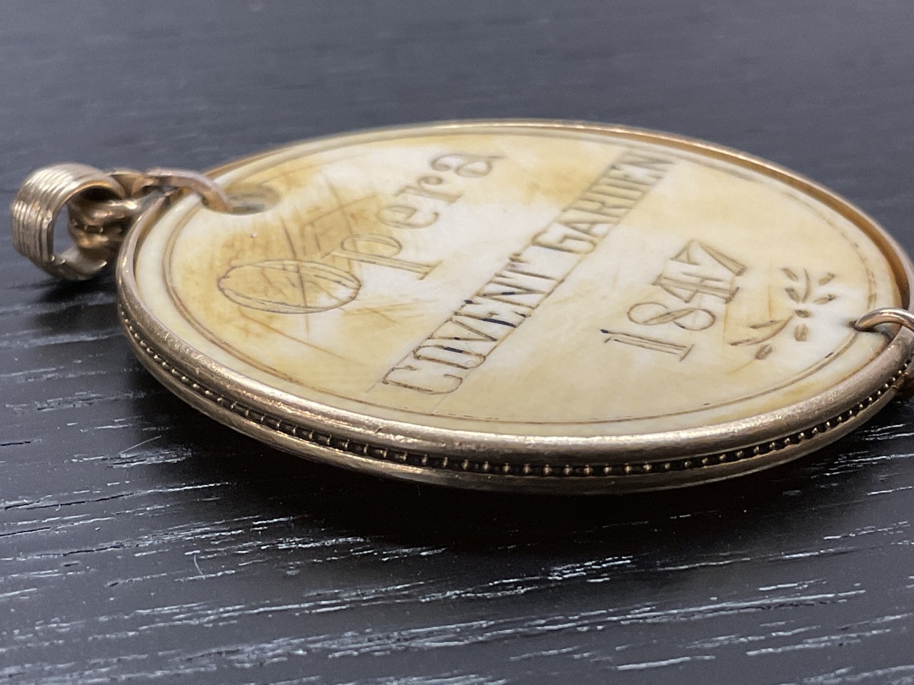 A rare c. 1847 Covent Garden Opera Ticket Medallion for box. Stated Prime Minister. Set in 14K tested frame.