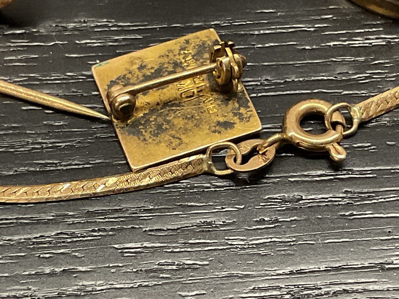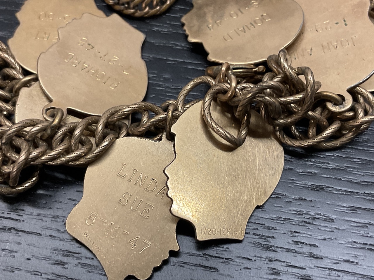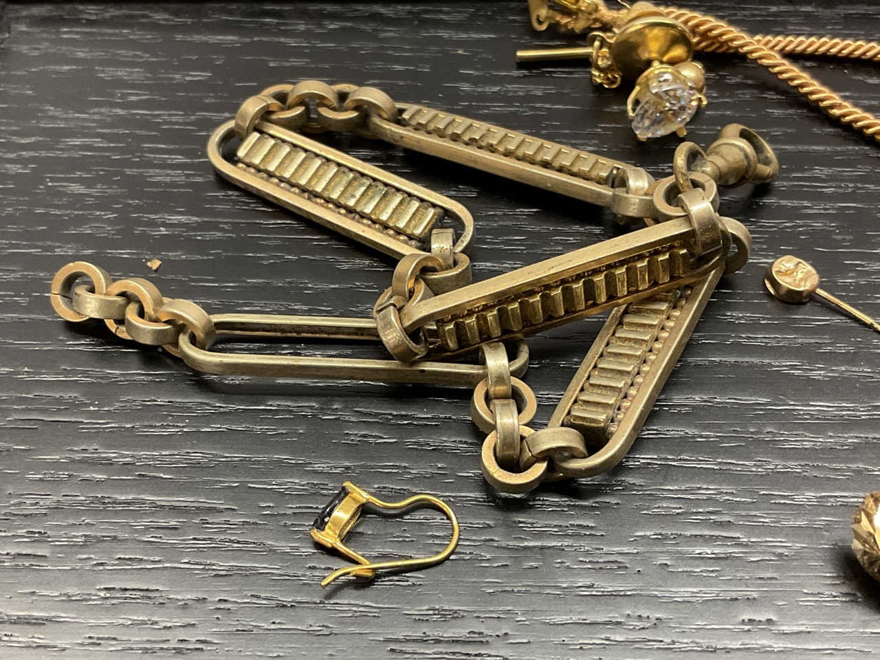 Estate Compiled Jewelry, Gold Filled, Gold, Watch Fobs Etc.. Gold filled charm bracelet, small 14K bracelet, pocket watch for parts, 10K pin and more