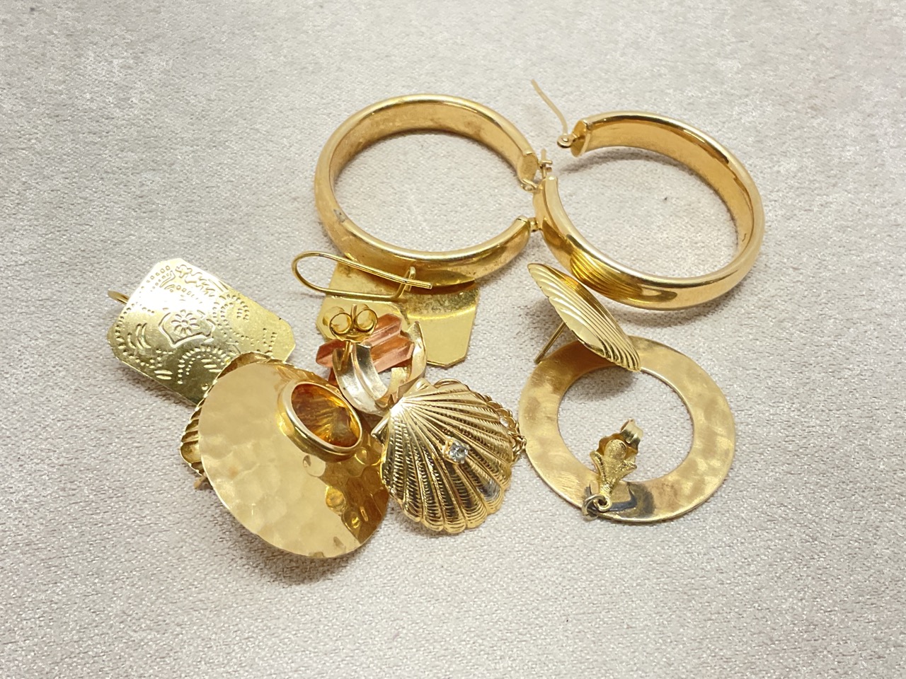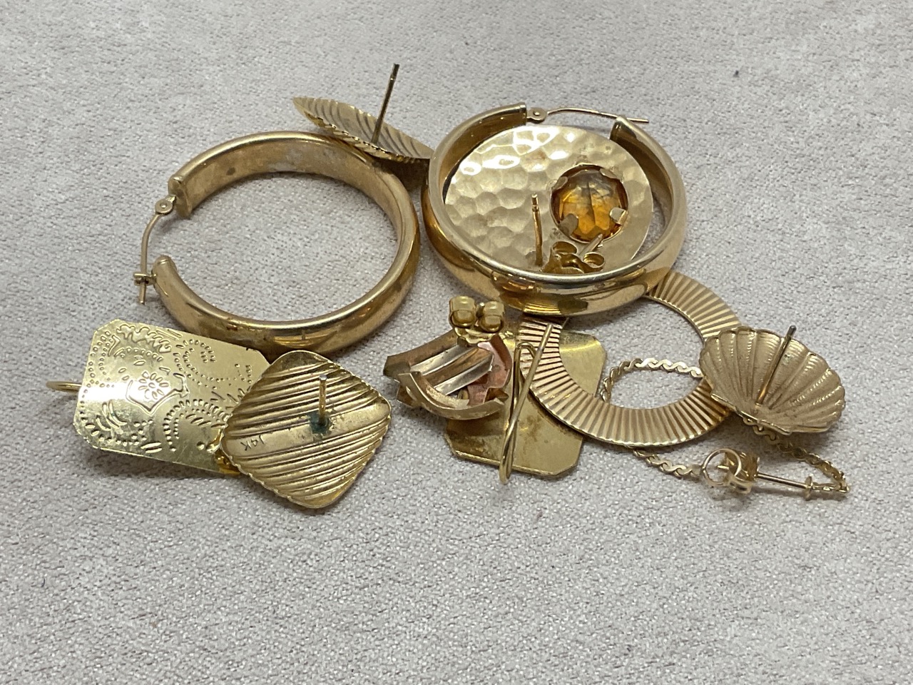 Estate 14K compiled jewelry group. For scrap, use or repair.
