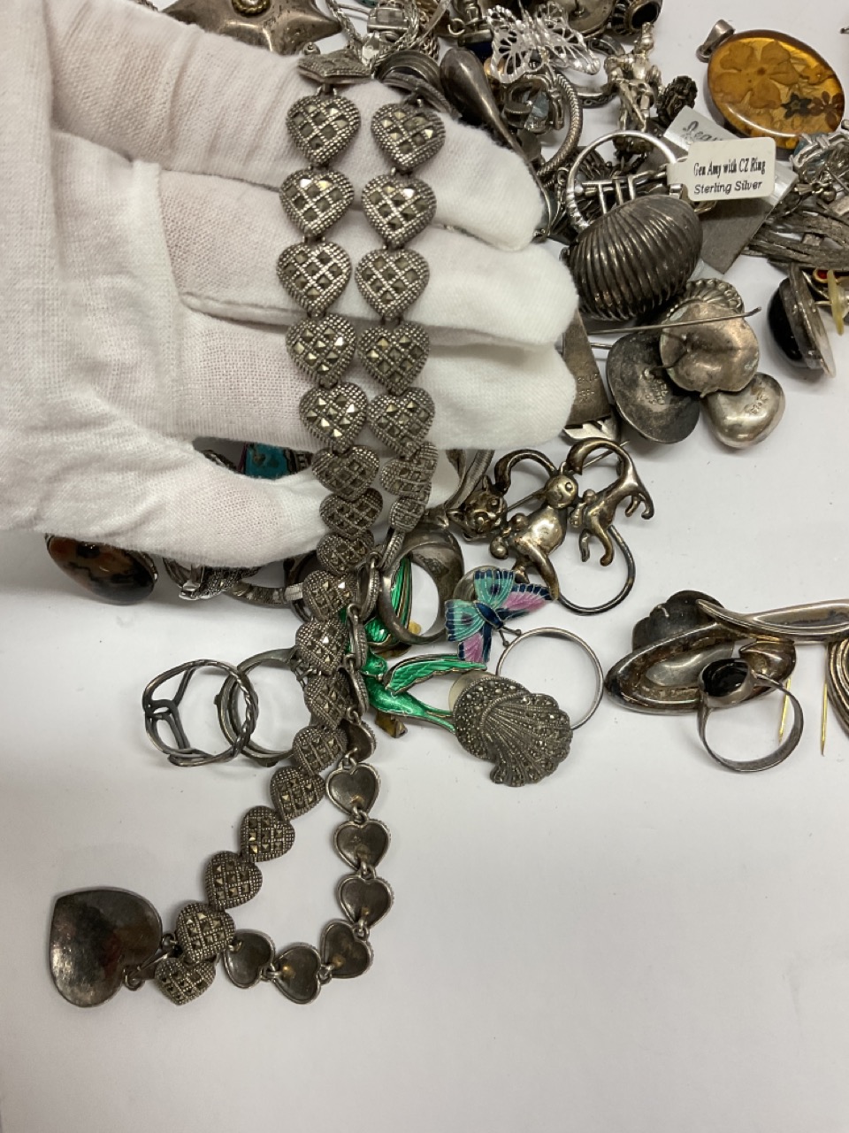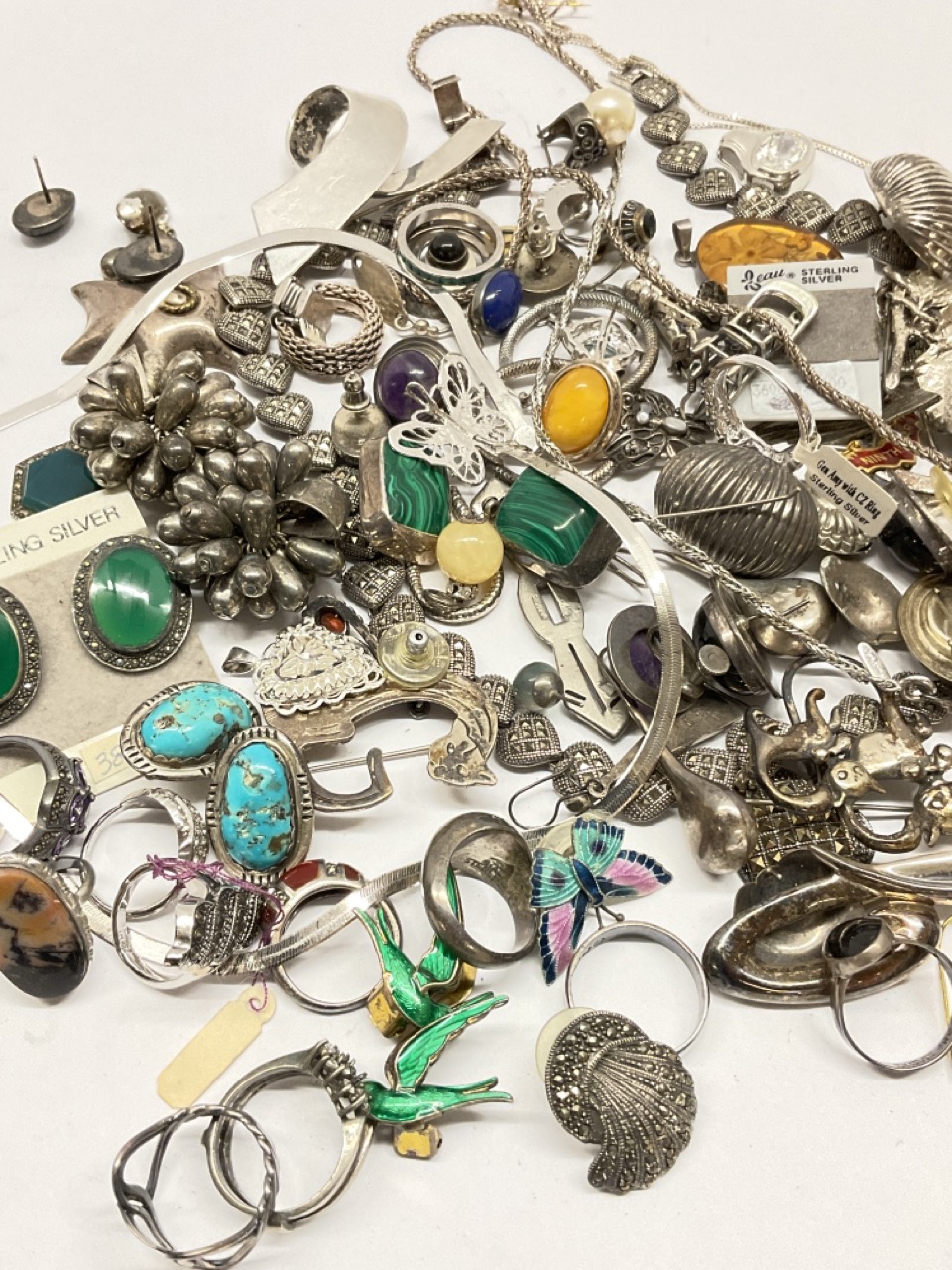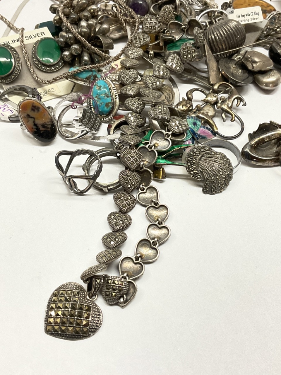 Estate compiled sterling silver jewelry group. Use, scrap, repair etc.