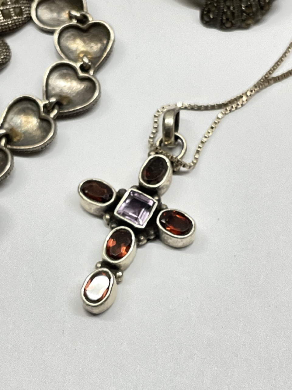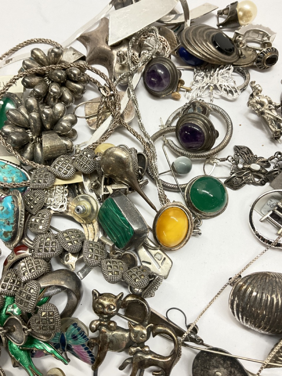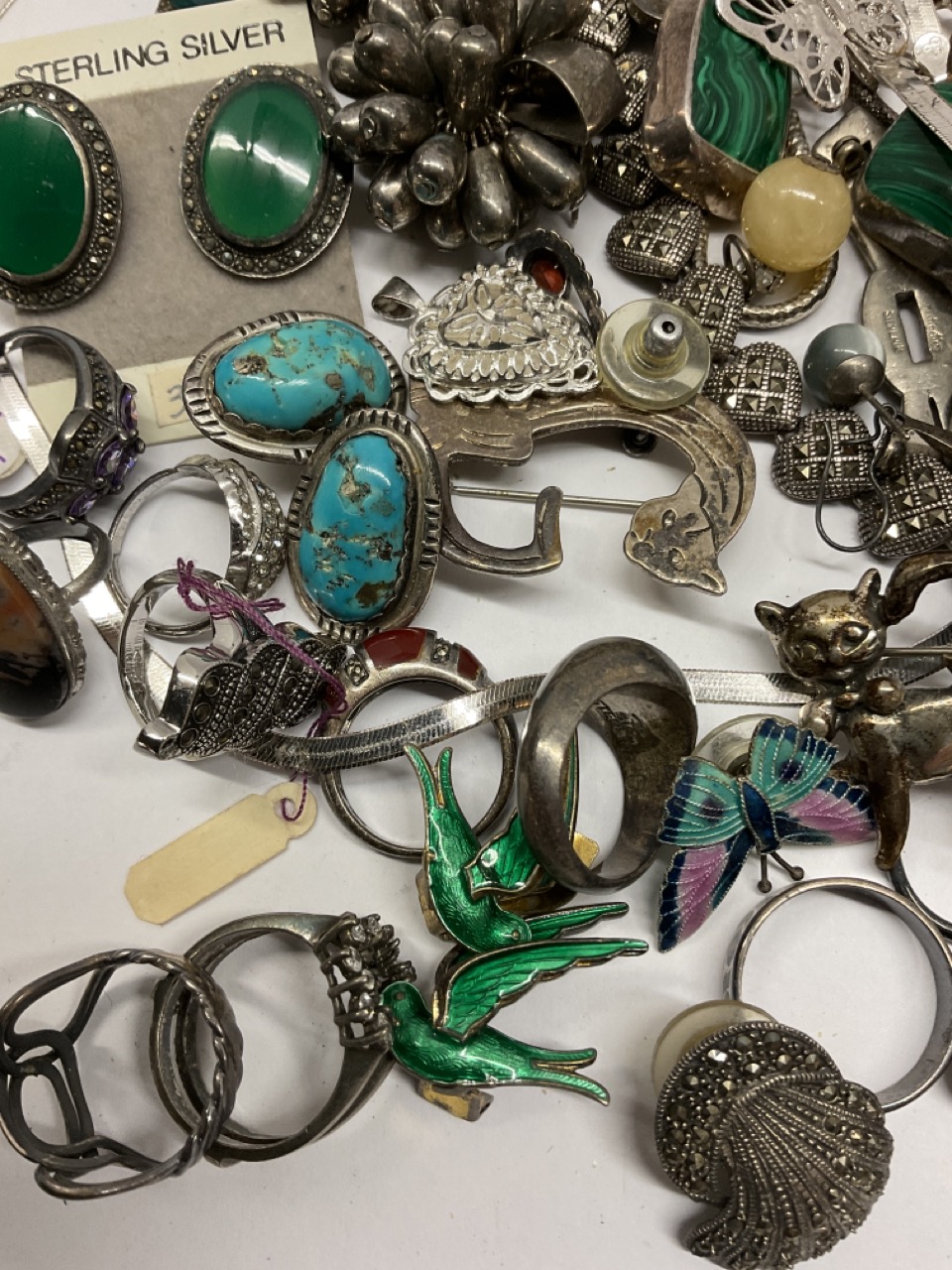 Estate compiled sterling silver jewelry group. Use, scrap, repair etc.